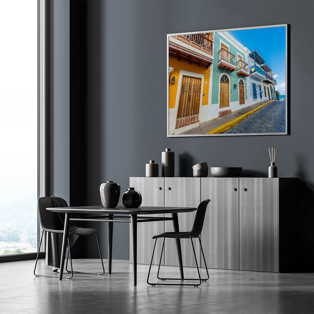 Bring the vibrant culture and architectural charm of Puerto Rico into your home with this stunning wall art featuring the colorful streets of Old San Juan. This high-quality Puerto Rico Wall Art captures the essence of the Caribbean with its lively colors, showcasing the rich heritage and beauty of Puerto Rican scenery. Perfect for any space, this artwork is available in various formats, including stretched canvas, framed prints, acrylic glass, and rolled options.