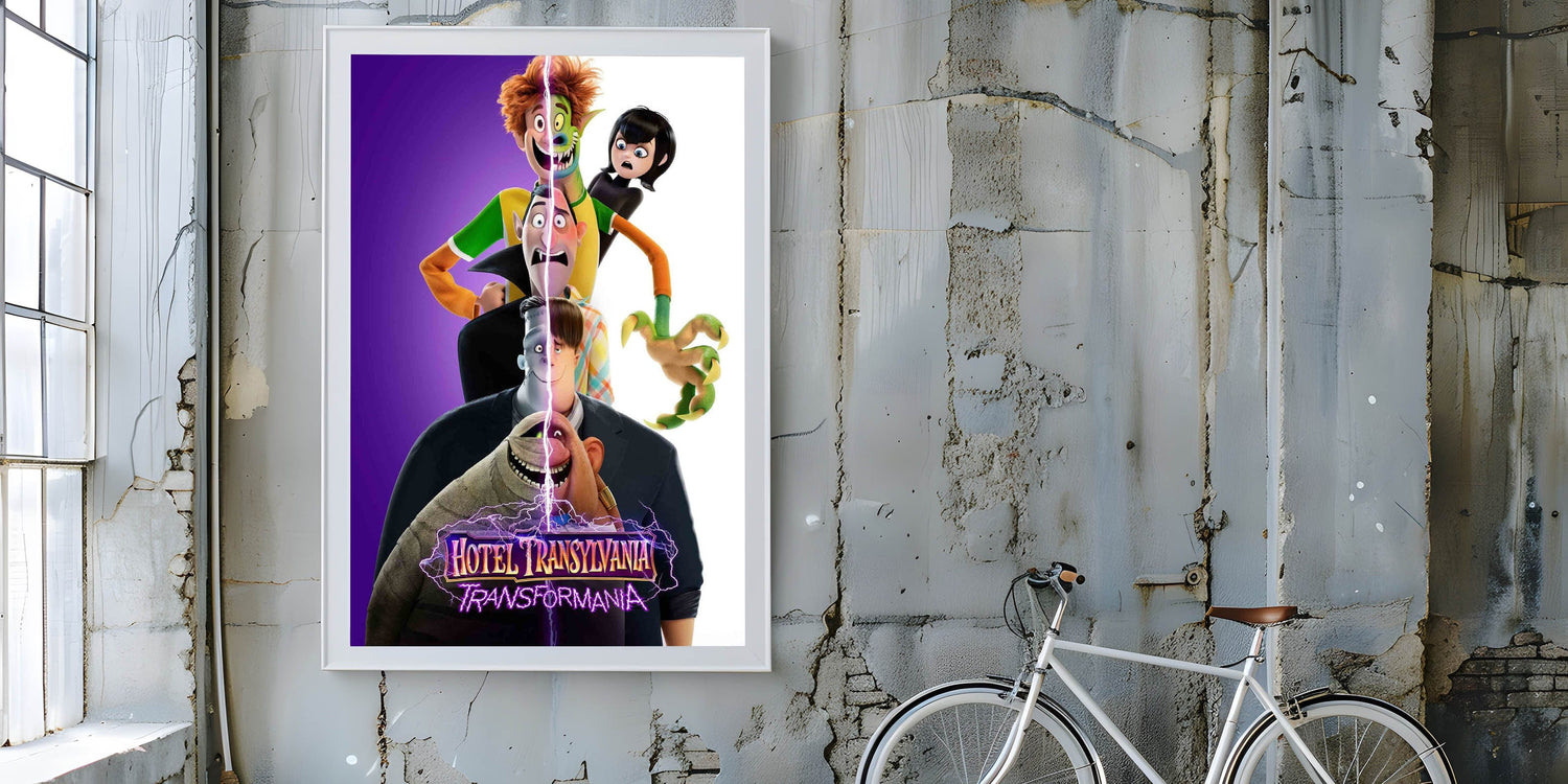 Bring animated fun to your collection with this 2020s vintage movie poster featuring Hotel Transylvania: Transformania. This retro film art print captures the vibrant and comedic energy of the beloved animated franchise with its authentic vintage style and eye-catching split design. Perfect for fans of movie memorabilia, this limited edition cinema art is a must-have for collectors and animation lovers.