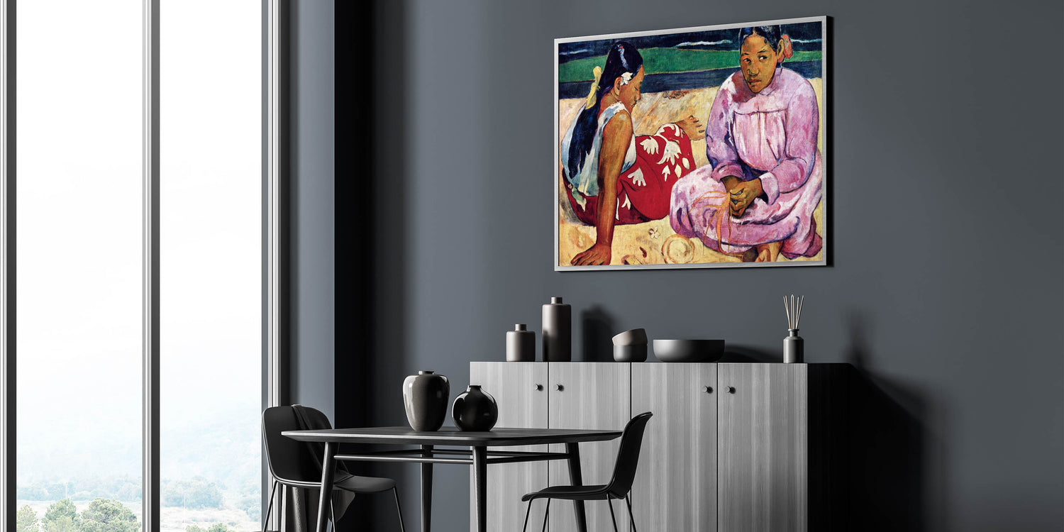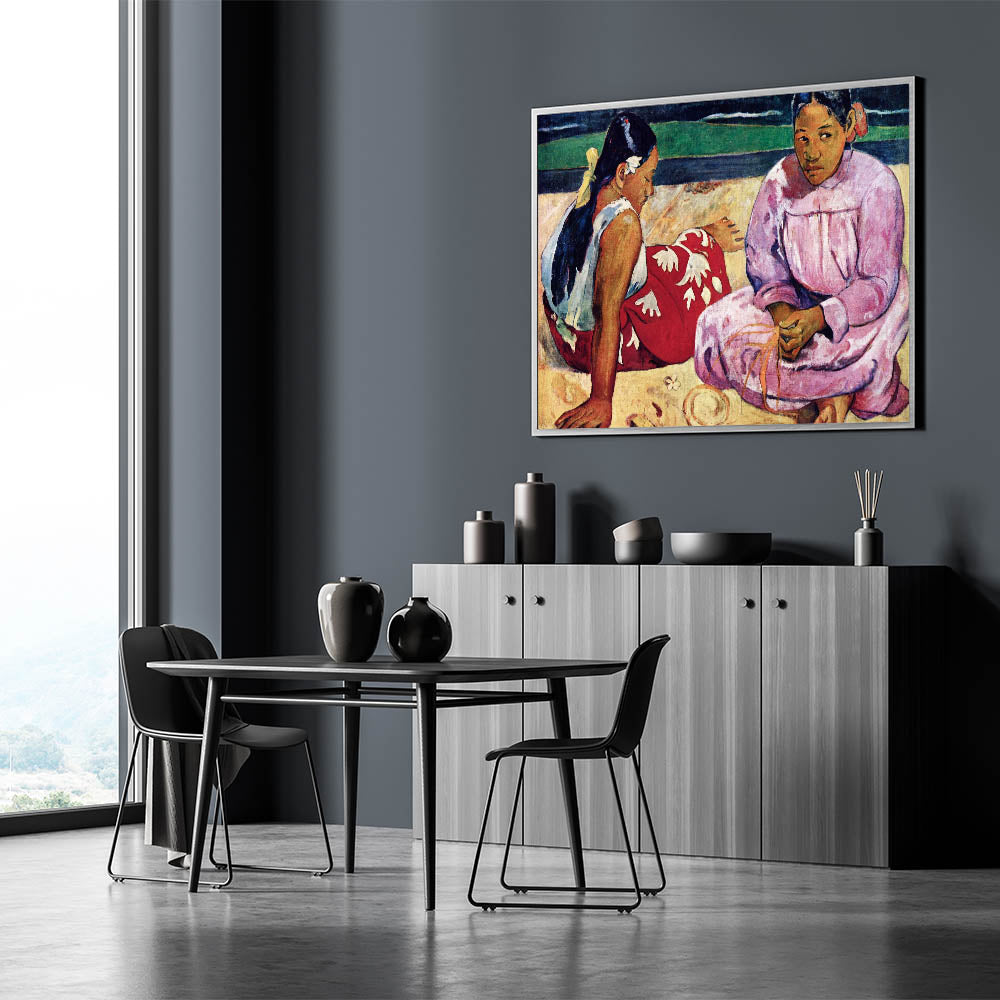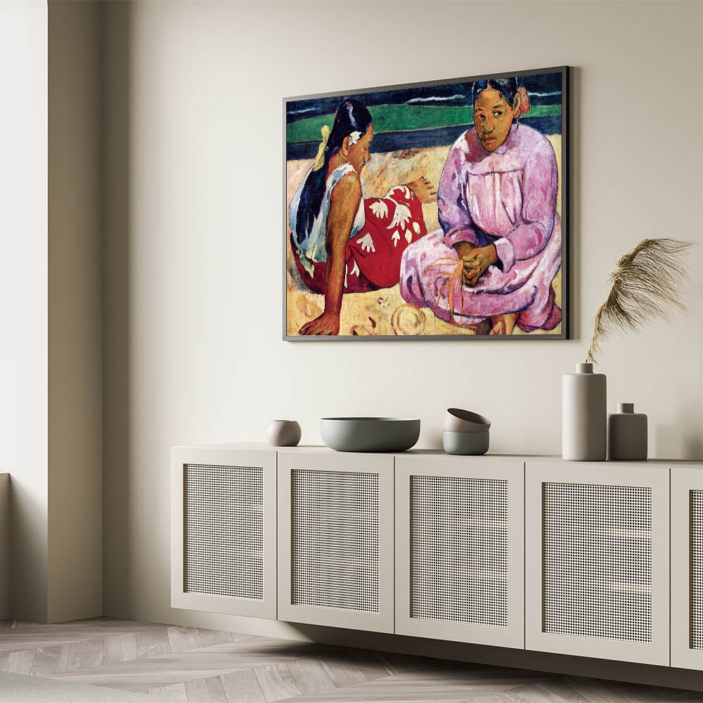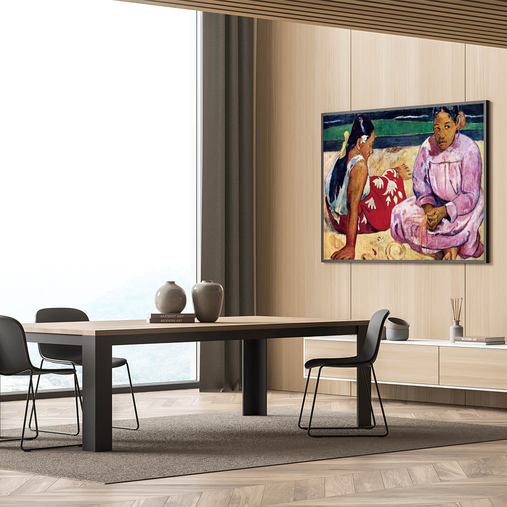 Enhance your living room, bedroom, or office with this stylish wall art that serves as a unique modern art statement. Let this piece transport you to the tranquil shores of Tahiti while elevating your interiors with its vibrant palette and cultural significance.