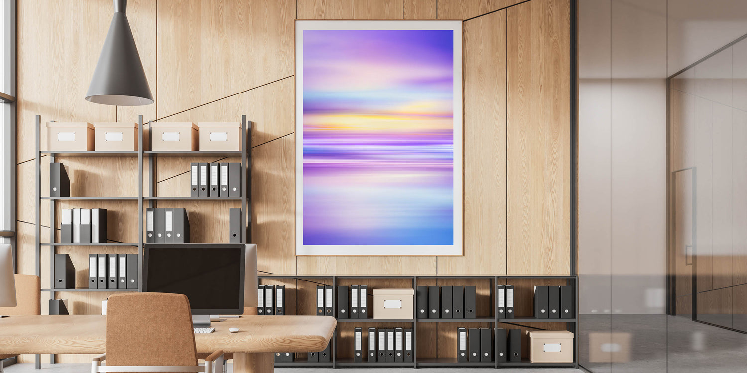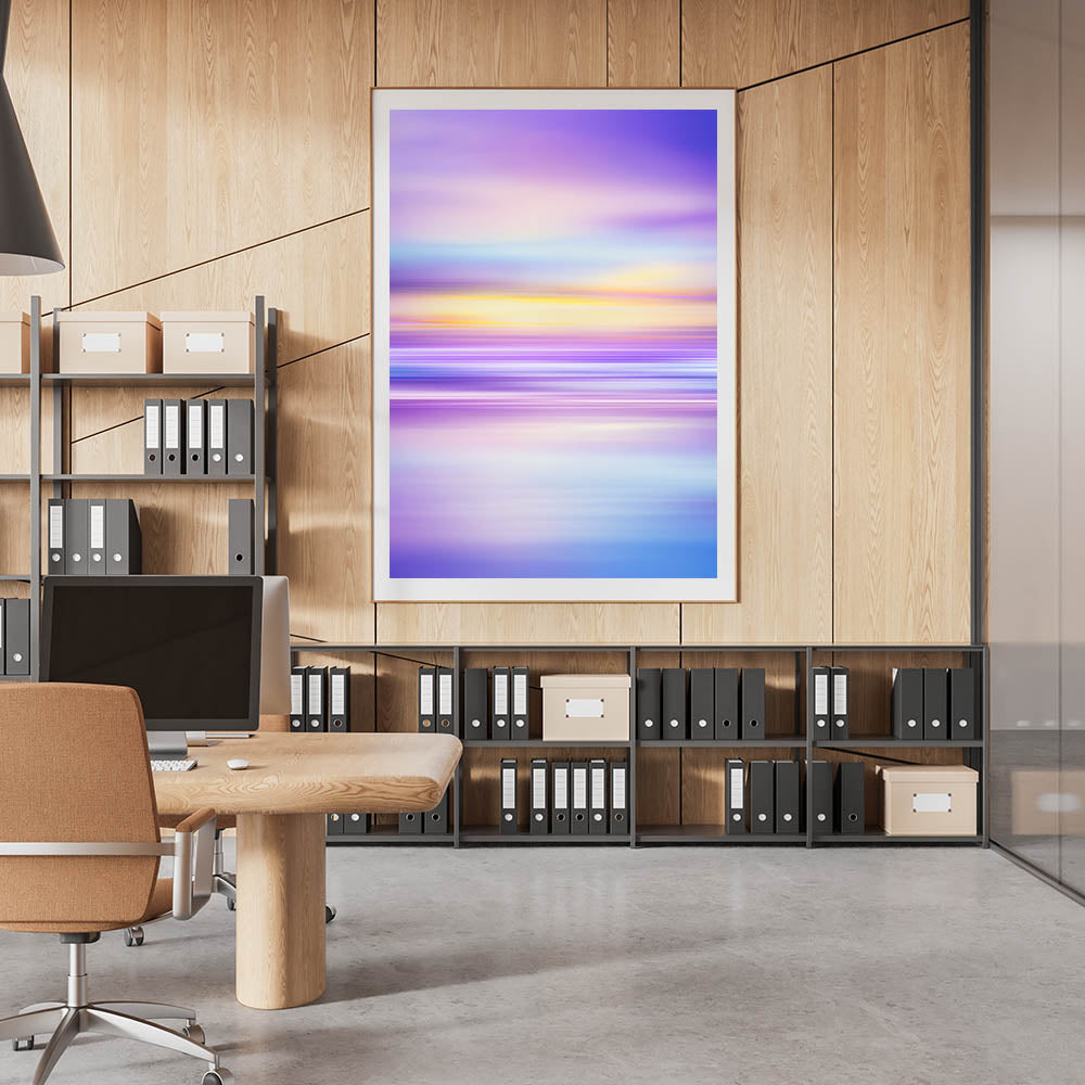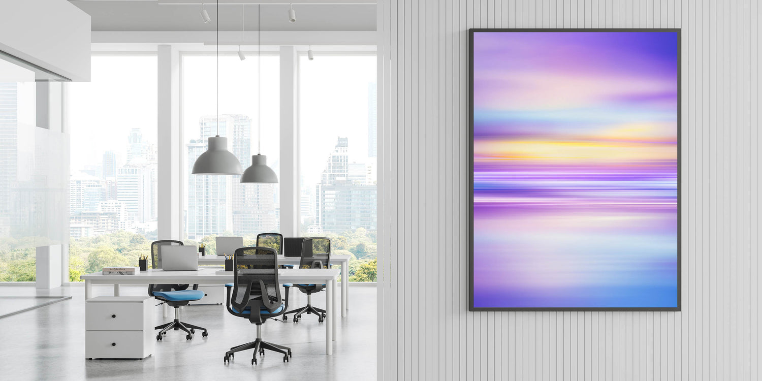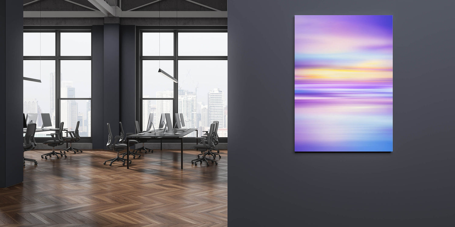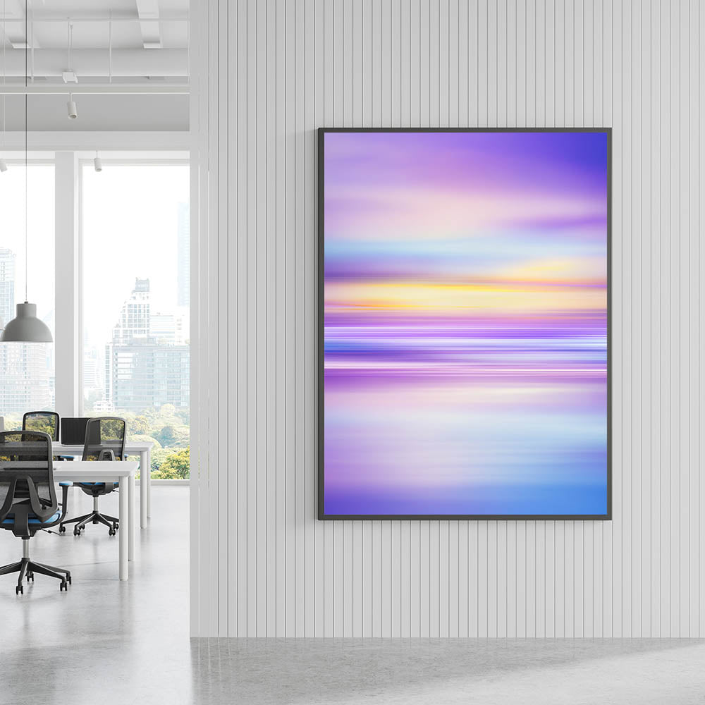 Infuse your workspace with creativity and tranquility with this modern office art featuring a breathtaking blend of purple, blue, and yellow hues. The soft transitions and abstract design create a sense of movement and serenity, making it an ideal office interior art piece for corporate spaces, conference rooms, and executive offices.