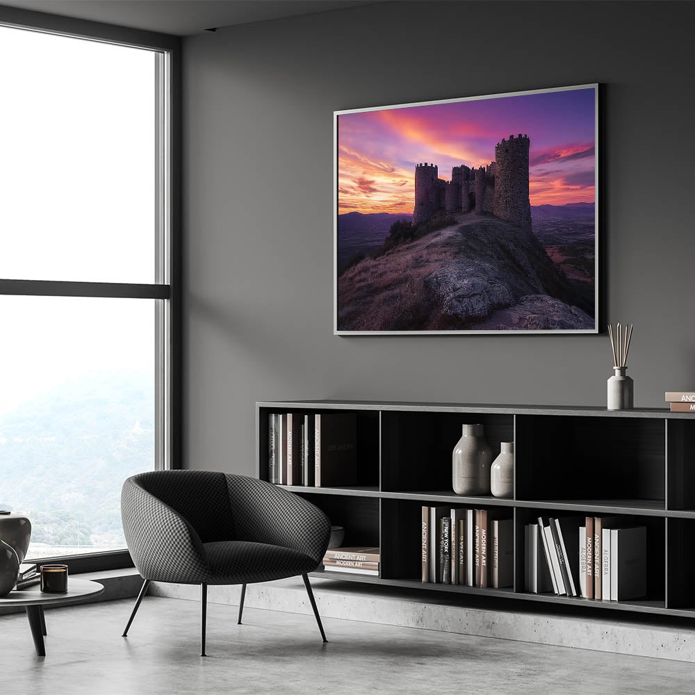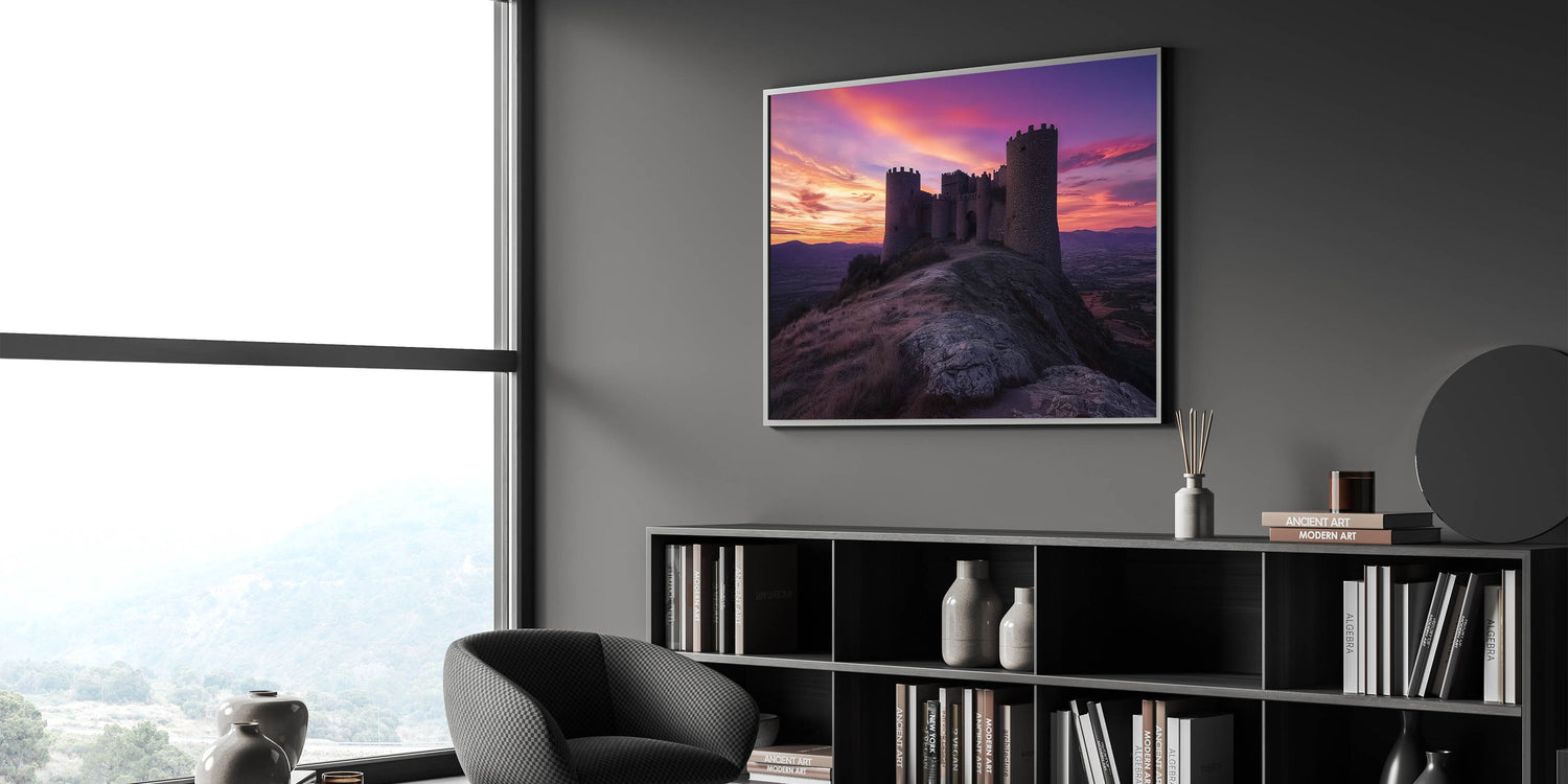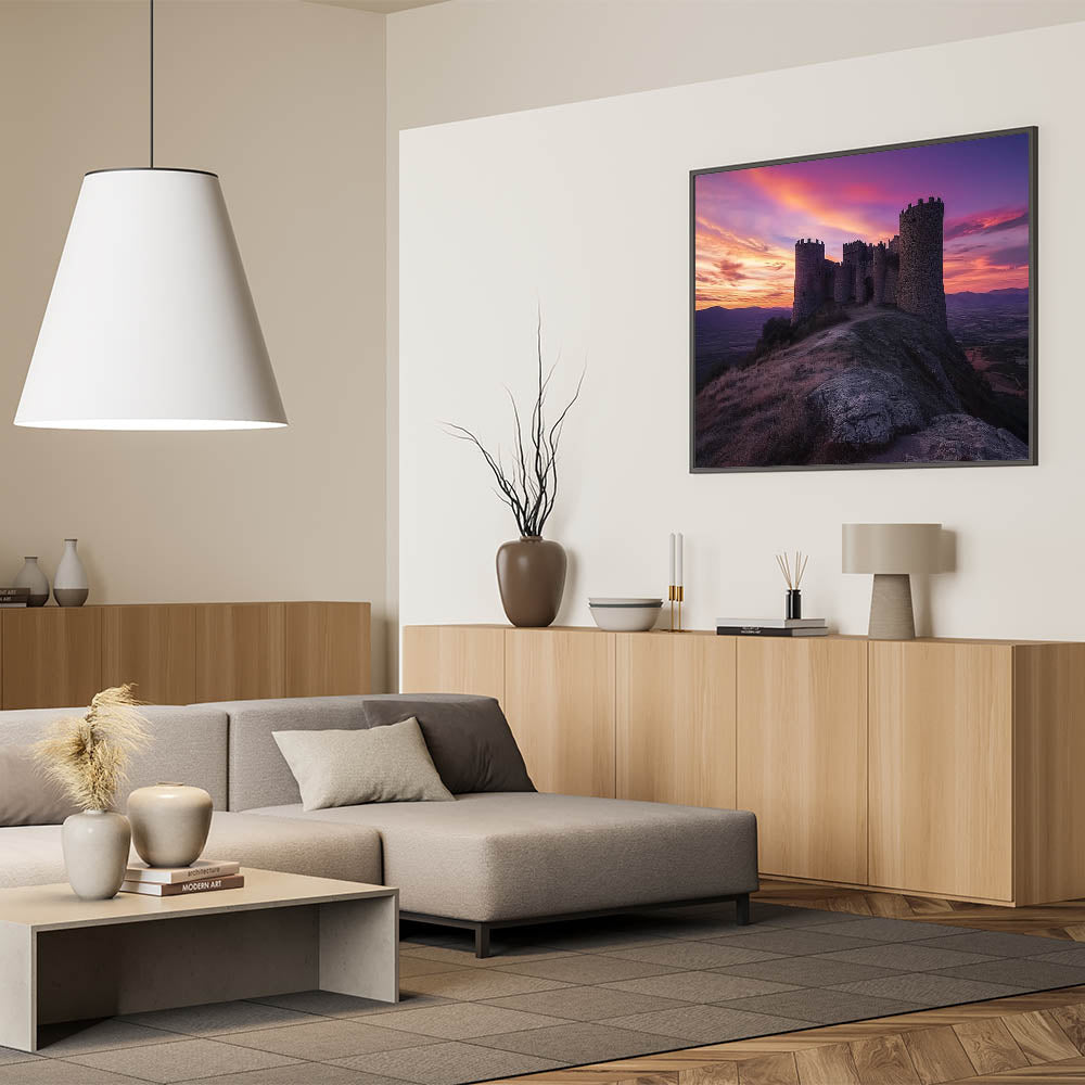 Transform your space with this unique castle artwork, perfect for lovers of history, sunsets, and dramatic landscapes.