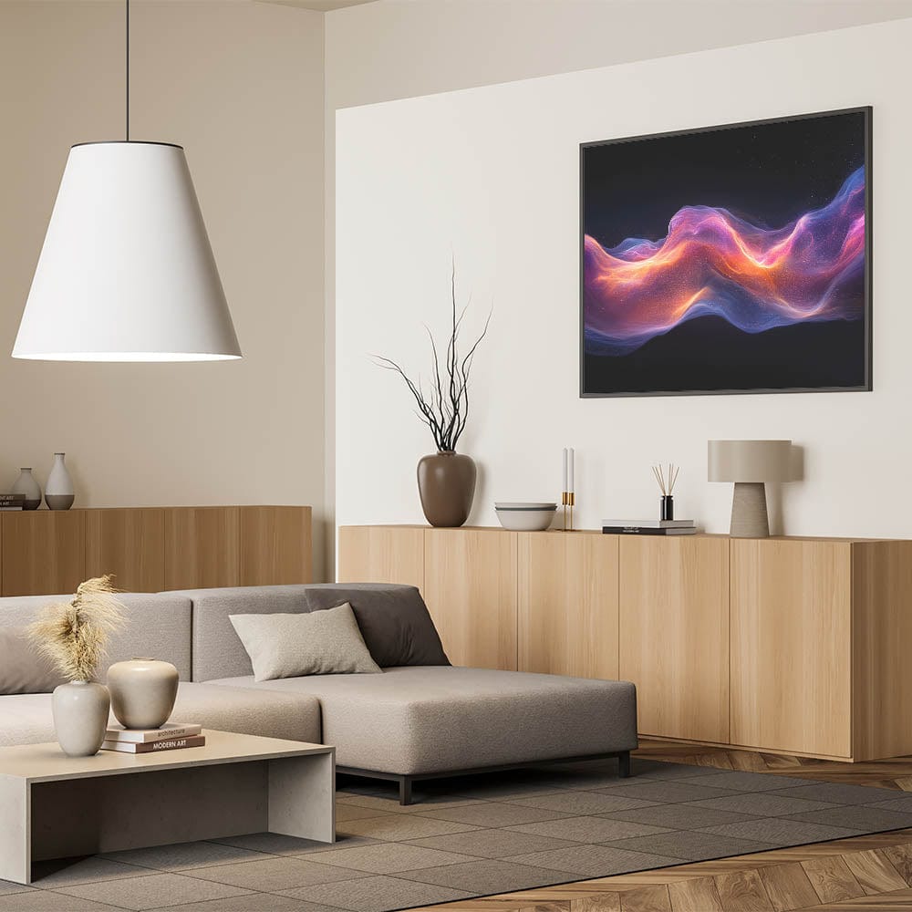 • High-definition reproduction of fluid acrylic wall decor with radiant gradients and lightplay
