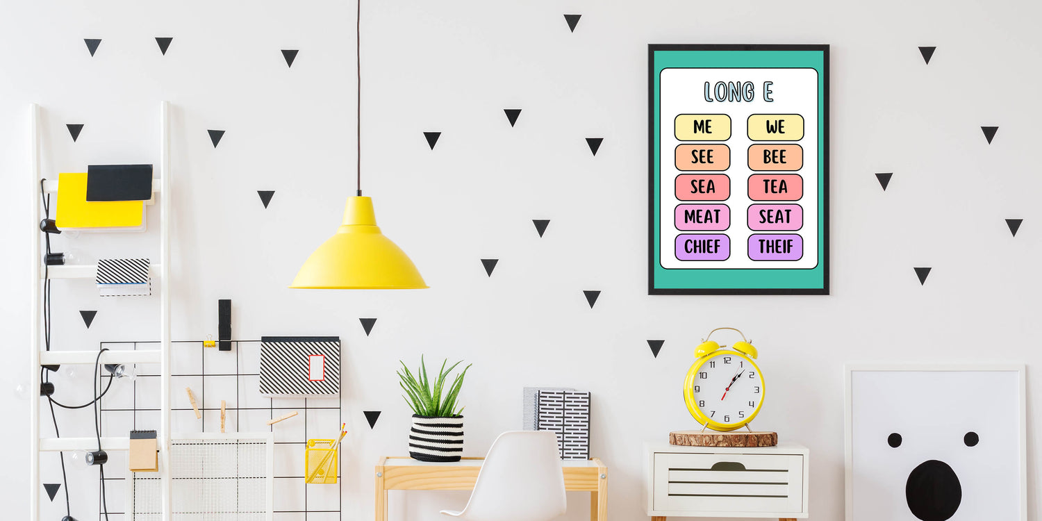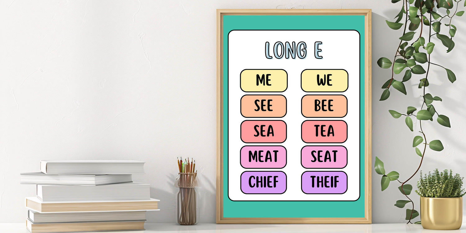Children’s Learning Art Print – Long E Phonics Poster for Kids