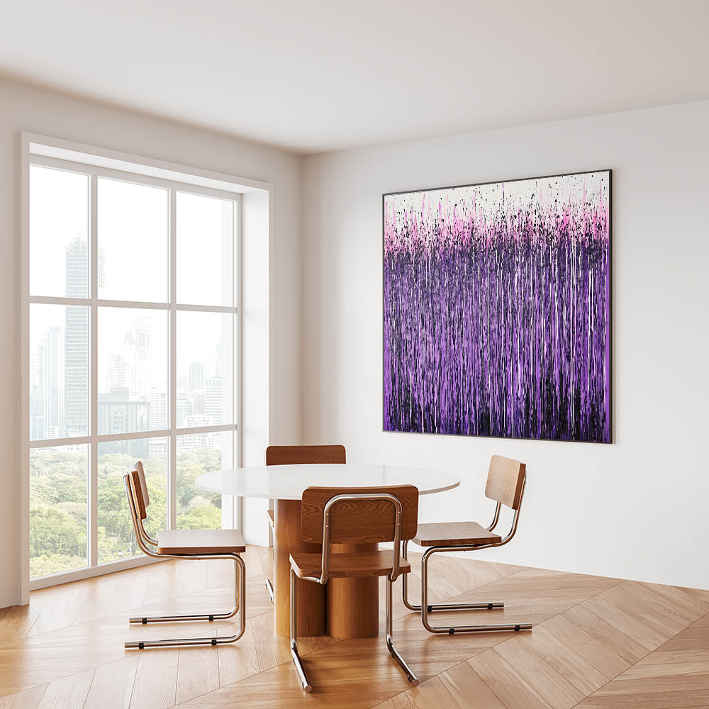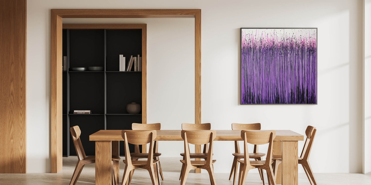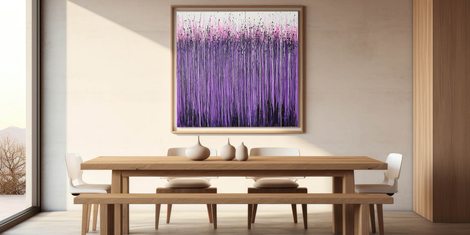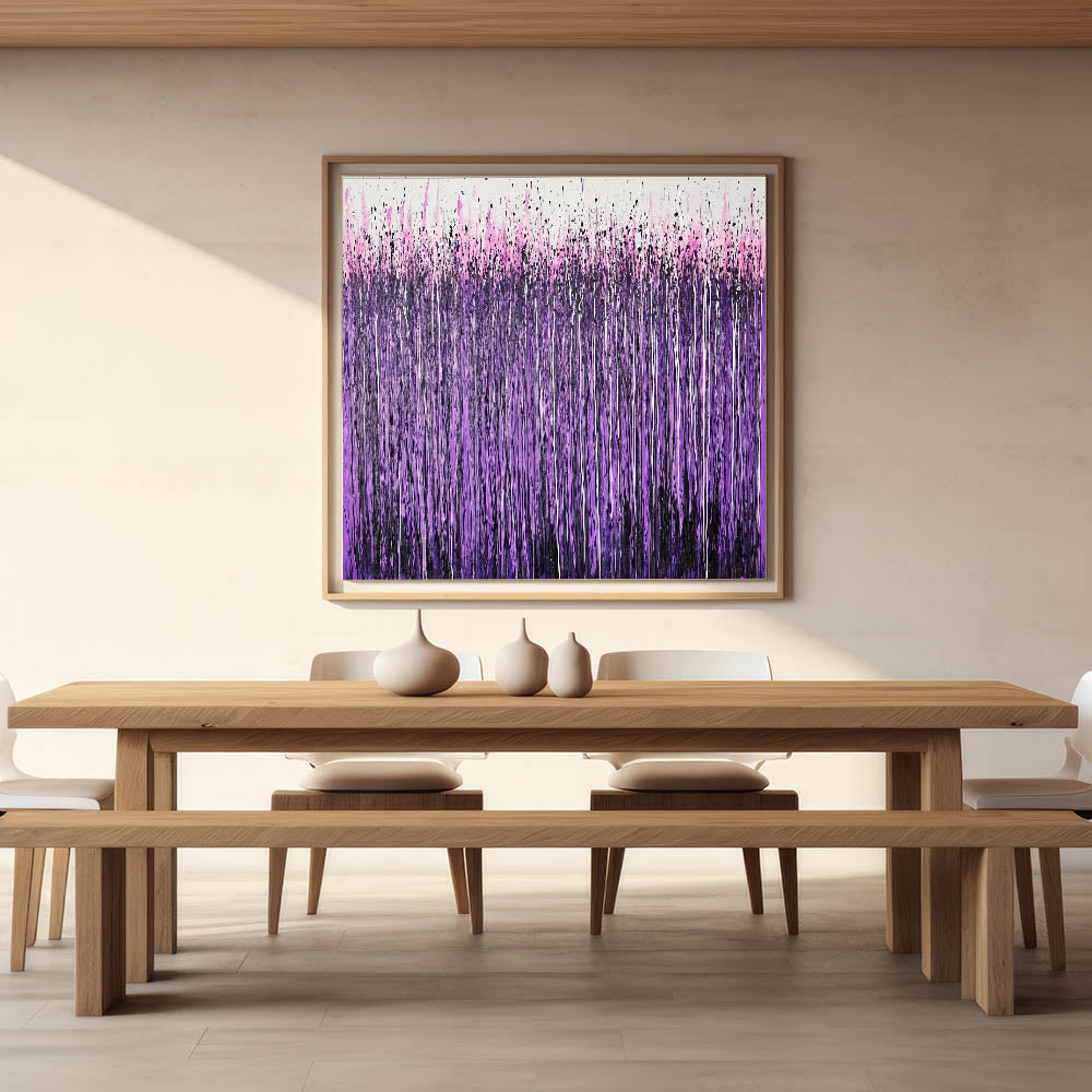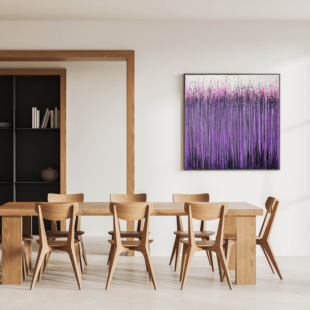 Transform your dining space with this elegant dining room wall art, featuring a striking drip-style abstract design in rich purple and soft pink hues. The cascading paint effect creates a dynamic and contemporary look, adding energy and creativity to any modern dining area. Whether you prefer a bold statement piece or an artistic touch of color, this artwork complements a variety of interior styles.