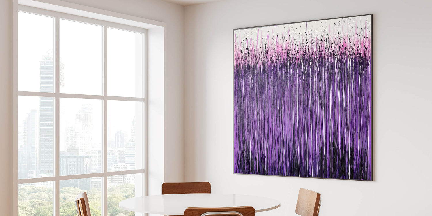 Dining Room Wall Decor – Vibrant Purple and Pink Drip Abstract