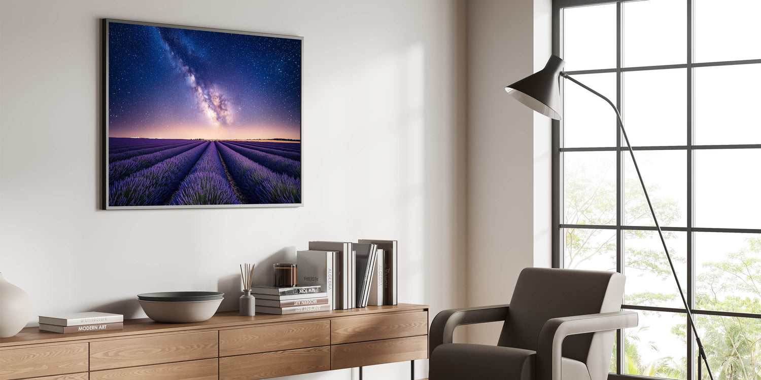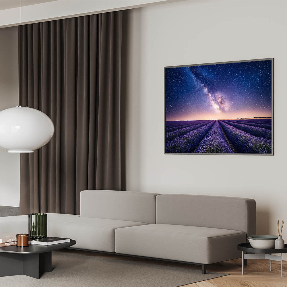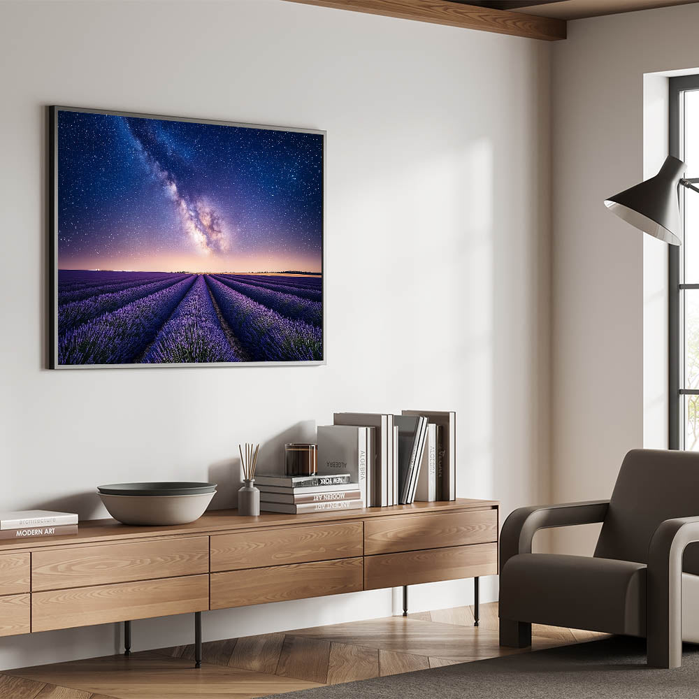 This field landscape art brings tranquility and inspiration to your space, making it a perfect choice for nature and stargazing enthusiasts. Choose from versatile options such as rolled canvas, framed prints, or modern acrylic glass to suit your style.