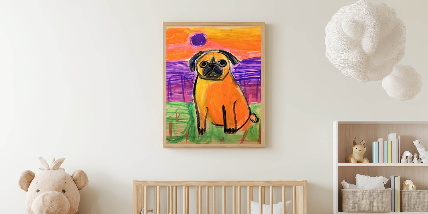 Kids Room Wall Art – Playful Pug Dog Sunset Painting