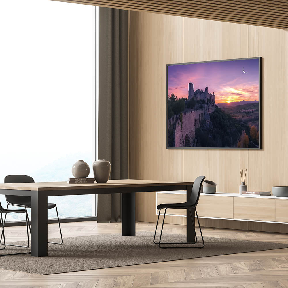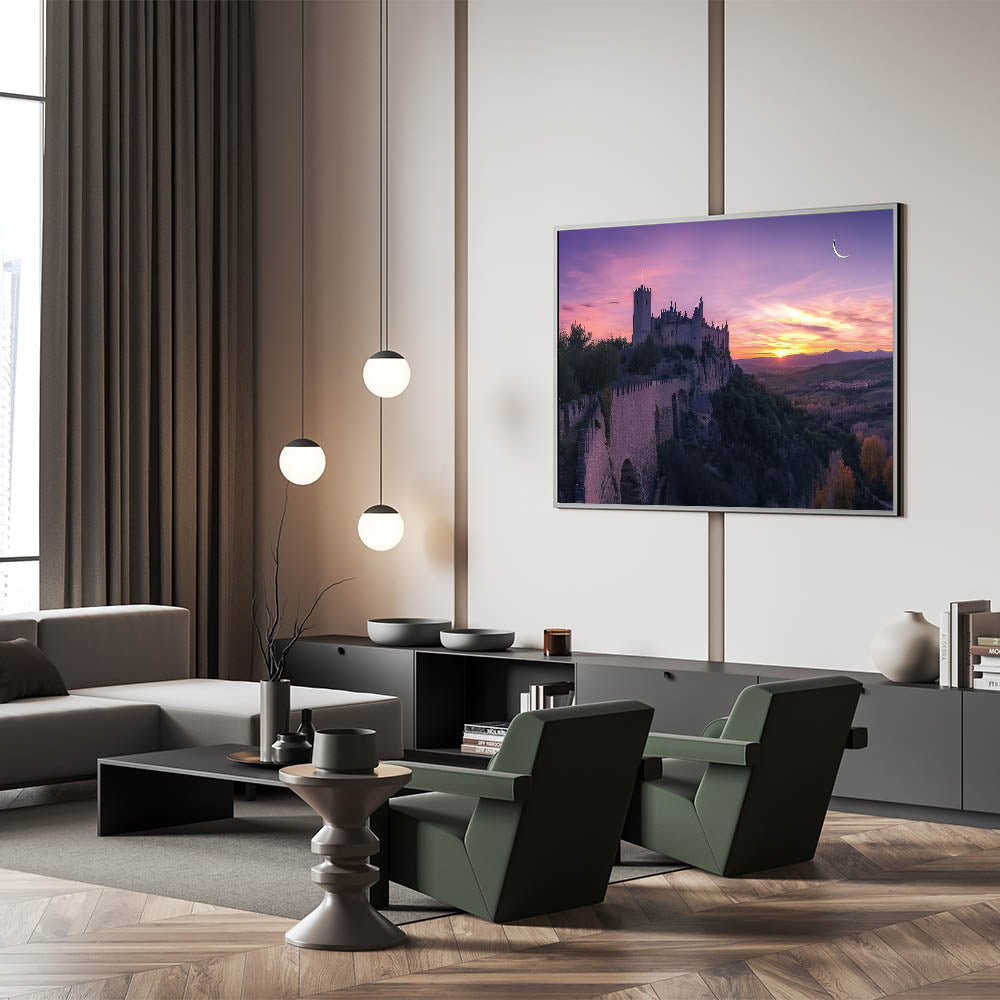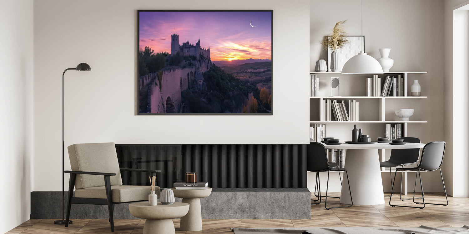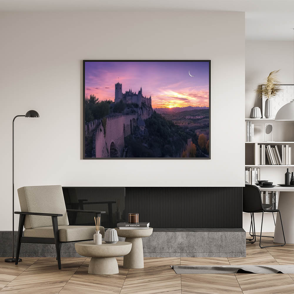 Ideal for castle enthusiasts and lovers of scenic landscapes, this artwork adds depth and sophistication to any living space. Bring home the charm of beautiful medieval castles and enjoy the peaceful beauty of a glowing sunset over rolling hills.