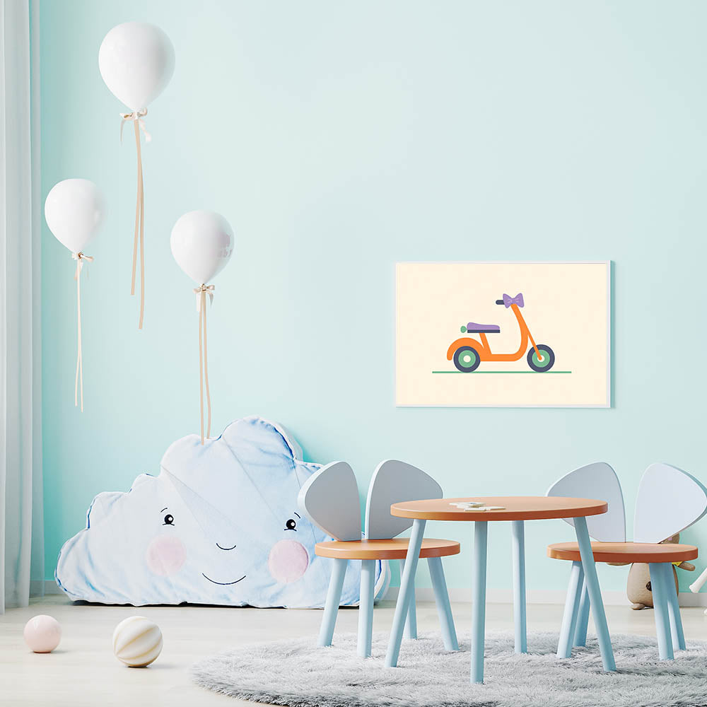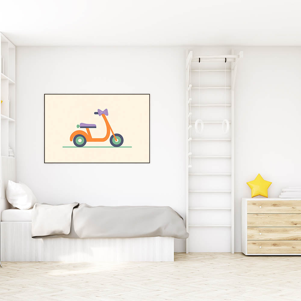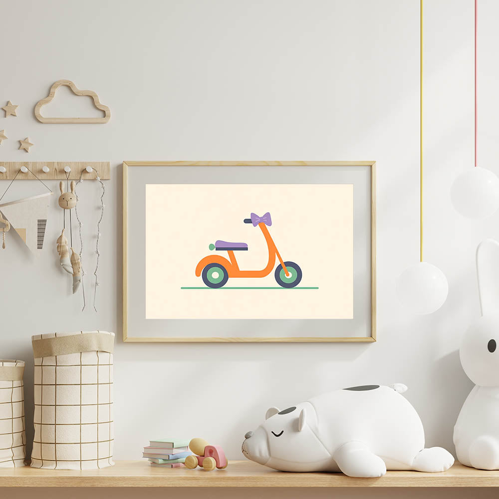 Add a playful and stylish touch to your child’s room with this vibrant boys room wall art featuring a charming retro scooter design. The minimalist yet bold artwork brings a fun, nostalgic feel, making it a perfect addition to kids wall art prints for nurseries, playrooms, or boys' bedrooms.