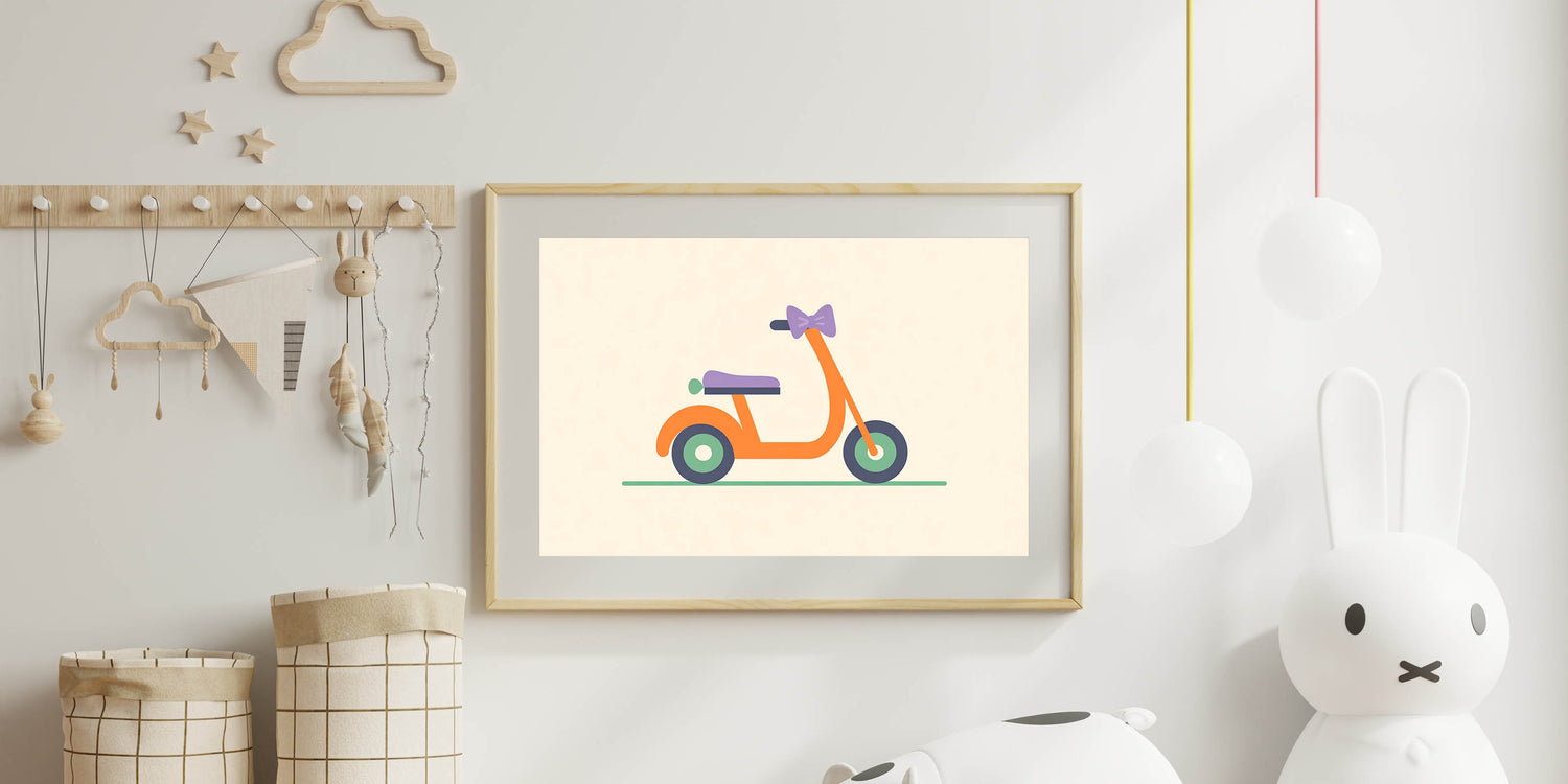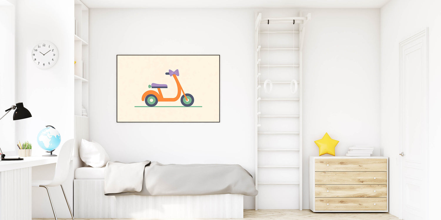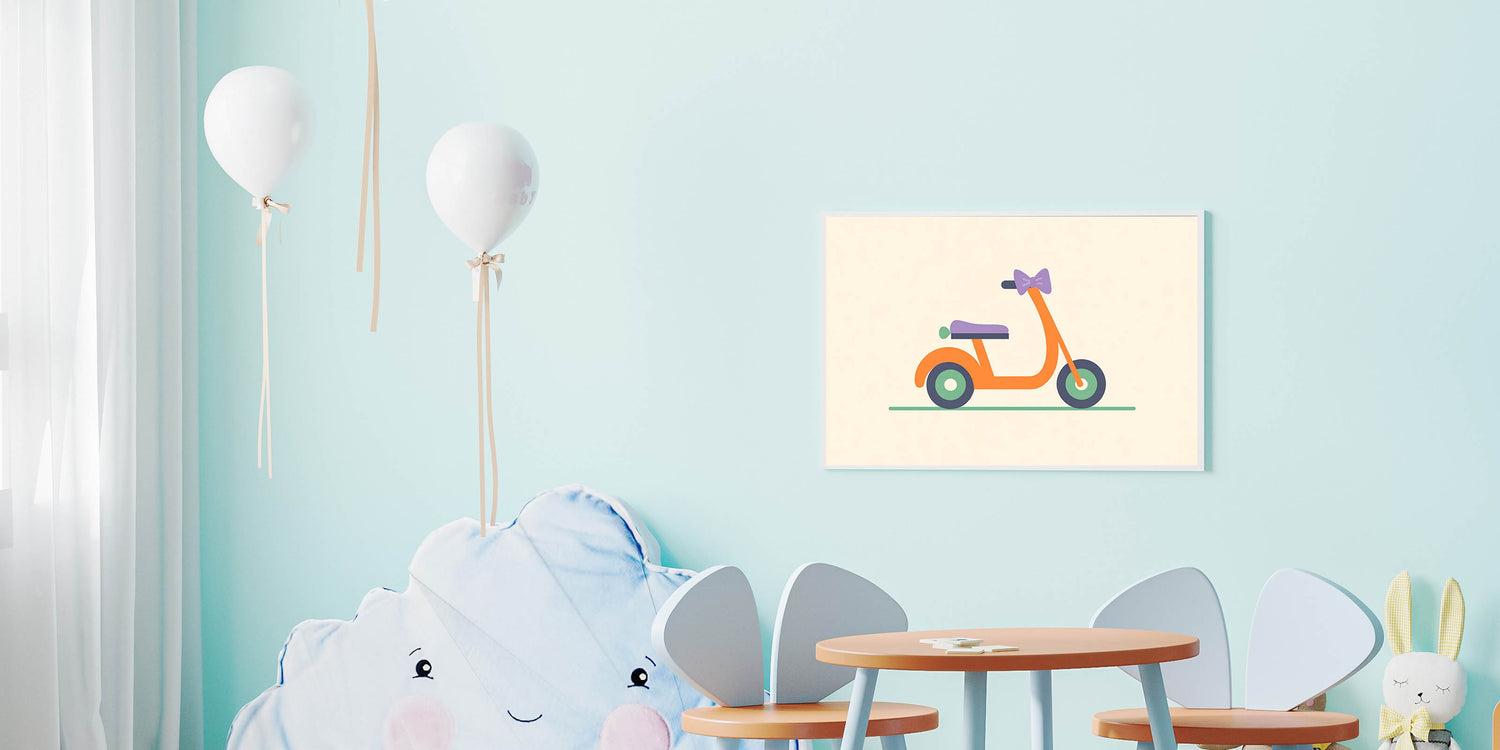 Add a playful and stylish touch to your child’s room with this vibrant boys room wall art featuring a charming retro scooter design. The minimalist yet bold artwork brings a fun, nostalgic feel, making it a perfect addition to kids wall art prints for nurseries, playrooms, or boys' bedrooms.