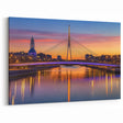 Add a contemporary touch to your decor with this Modern Cable Bridge Artwork, featuring a striking cable-stayed bridge illuminated against a breathtaking urban sunset. The reflection of the warm golden hues and vibrant purples on the calm waters creates a dynamic and sophisticated centerpiece for any space.