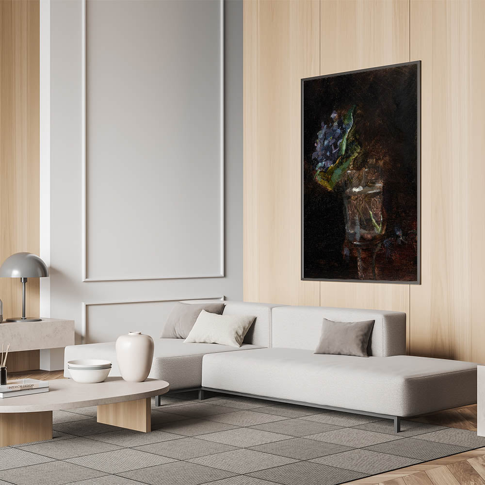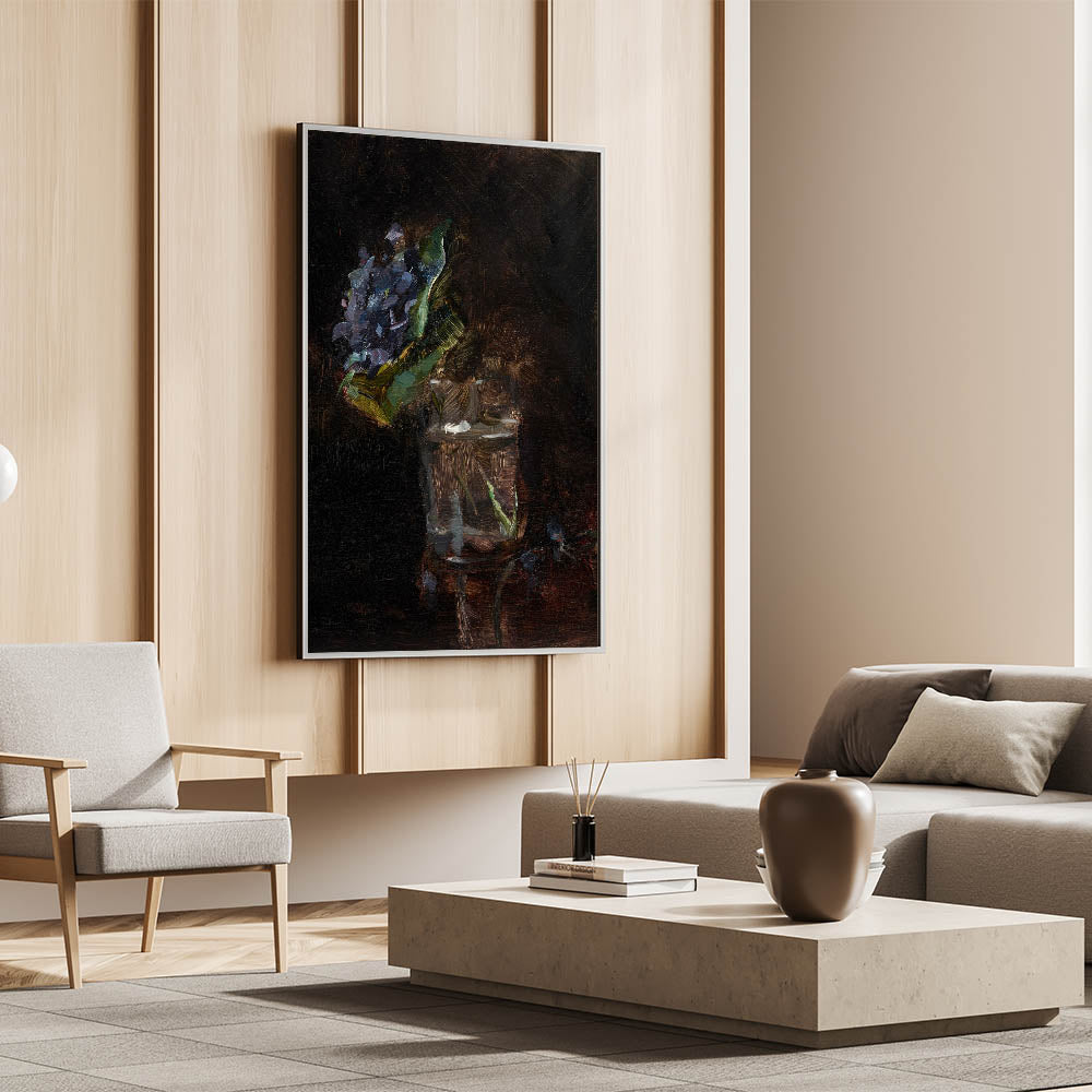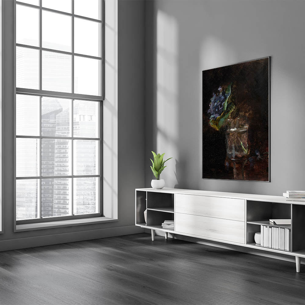 Introduce a touch of mystery and sophistication to your decor with this Modern Wall Art piece, featuring a delicate bouquet of violets set against a deep, shadowy background. This Abstract Modern Art exudes a moody elegance, making it an ideal addition for those who appreciate Stylish Wall Art with a classic, romantic touch.