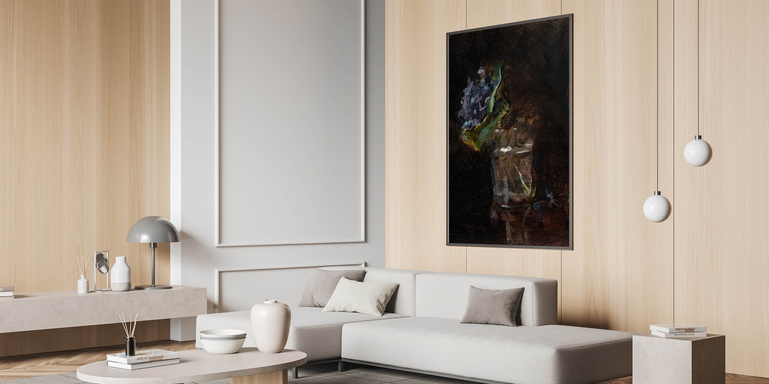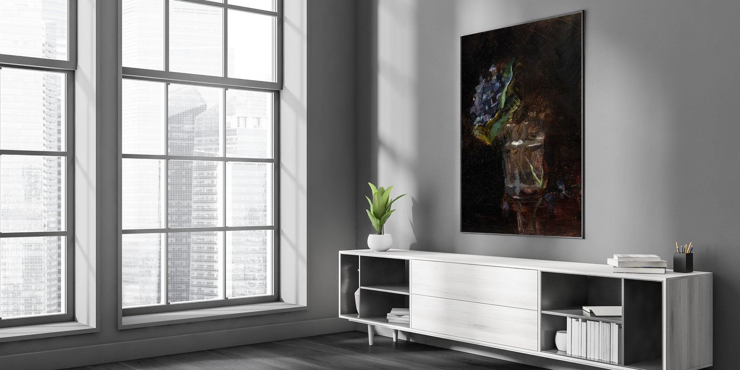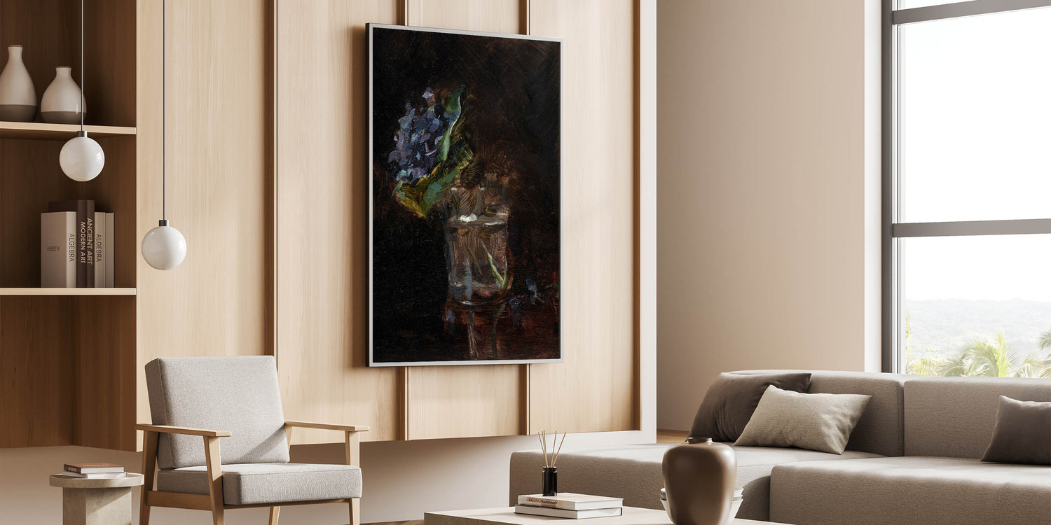 Introduce a touch of mystery and sophistication to your decor with this Modern Wall Art piece, featuring a delicate bouquet of violets set against a deep, shadowy background. This Abstract Modern Art exudes a moody elegance, making it an ideal addition for those who appreciate Stylish Wall Art with a classic, romantic touch.