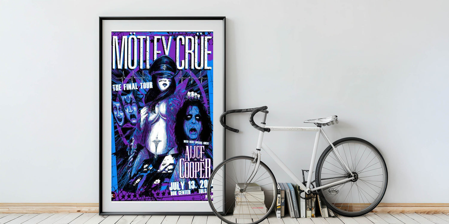Bring the unforgettable energy of Mötley Crüe's Final Tour into your home with this stunning concert poster. It’s the perfect way to commemorate one of the most iconic bands in rock history.