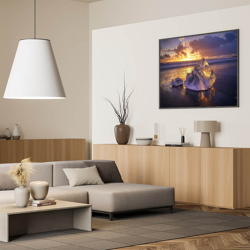 - Premium-quality materials: Available as stretched canvas, framed canvas, acrylic glass, and more.