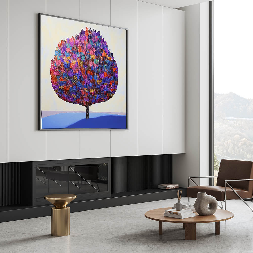 - Bold Abstract Design: A unique multicolor tree with a vibrant textured effect for a dynamic and artistic look.