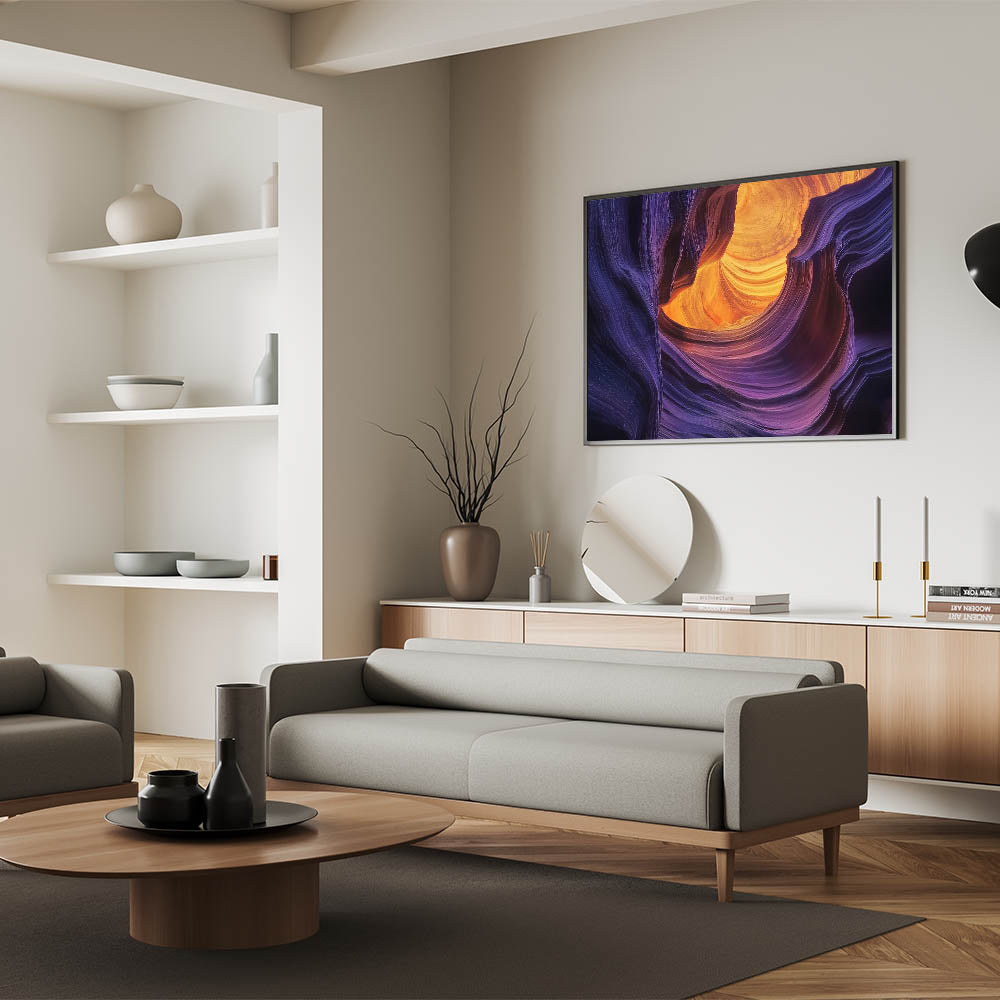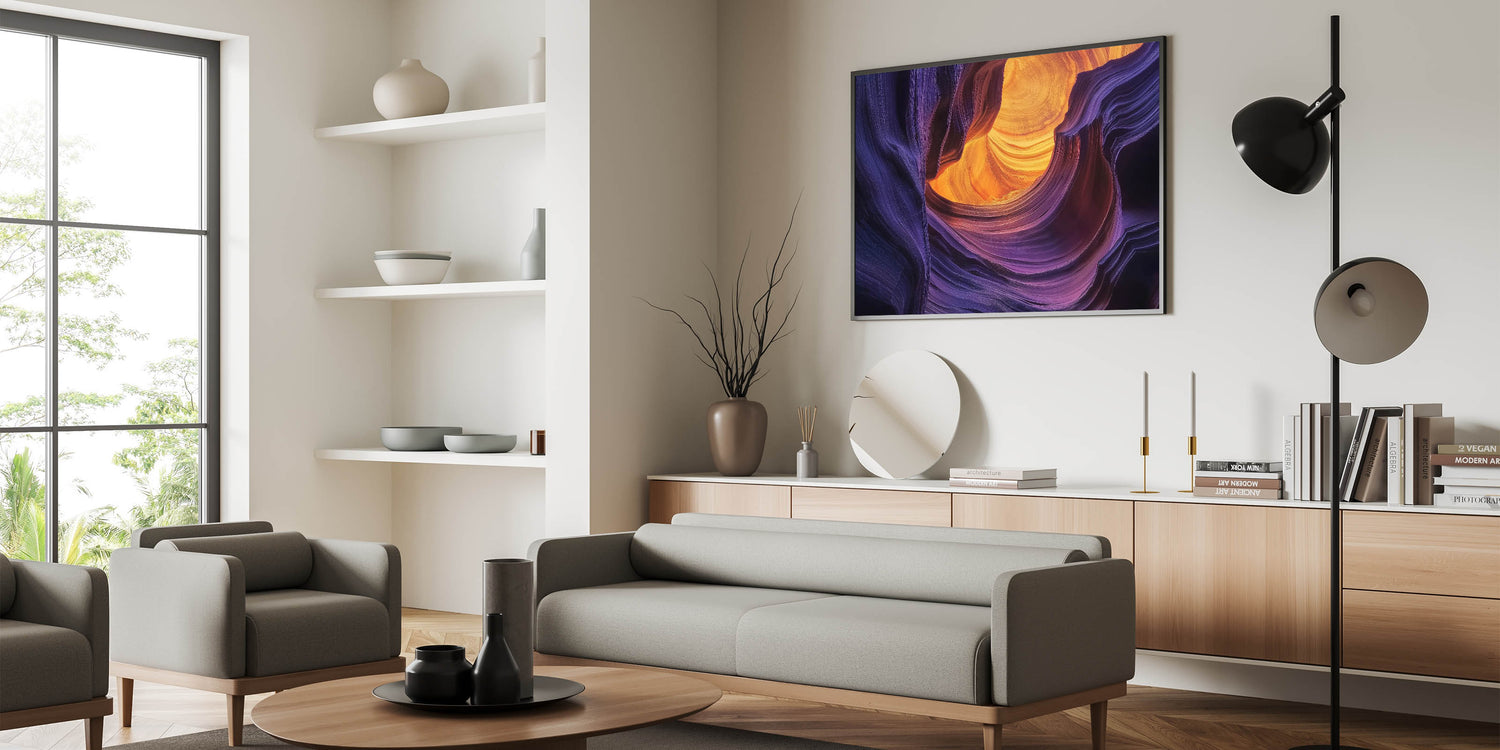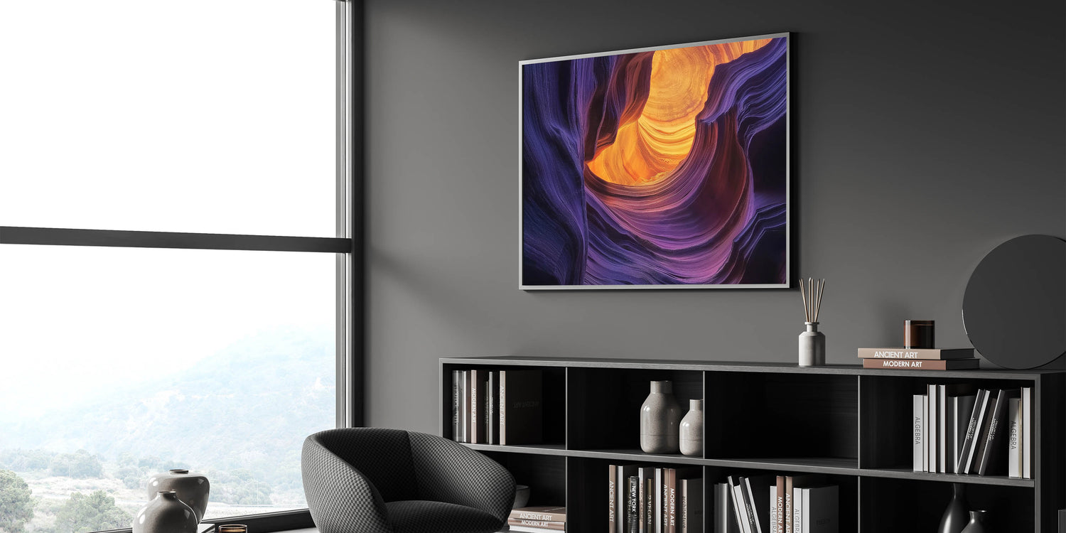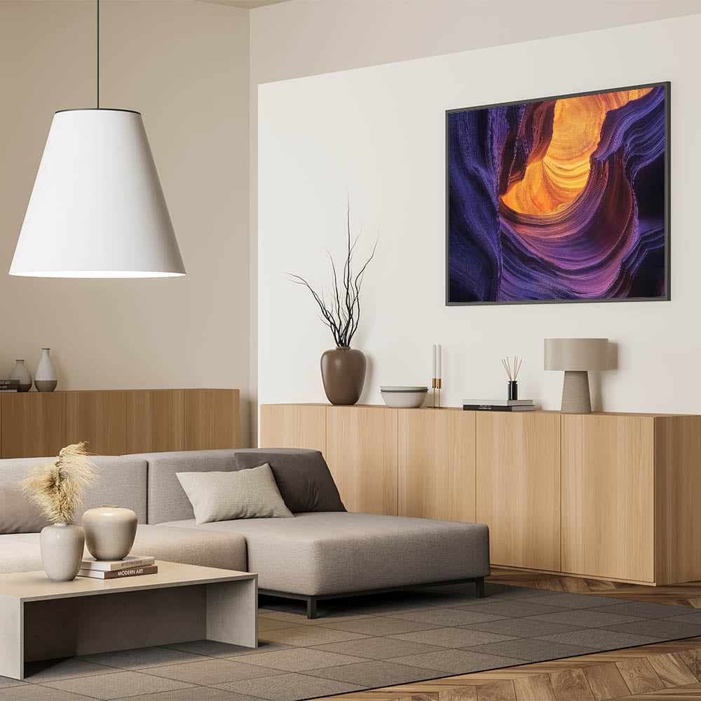 Transform your living room, office, or bedroom with this high-resolution abstract canyon art. Its radiant colors and dynamic design create a statement piece that energizes and elevates any decor.