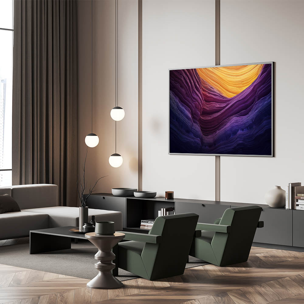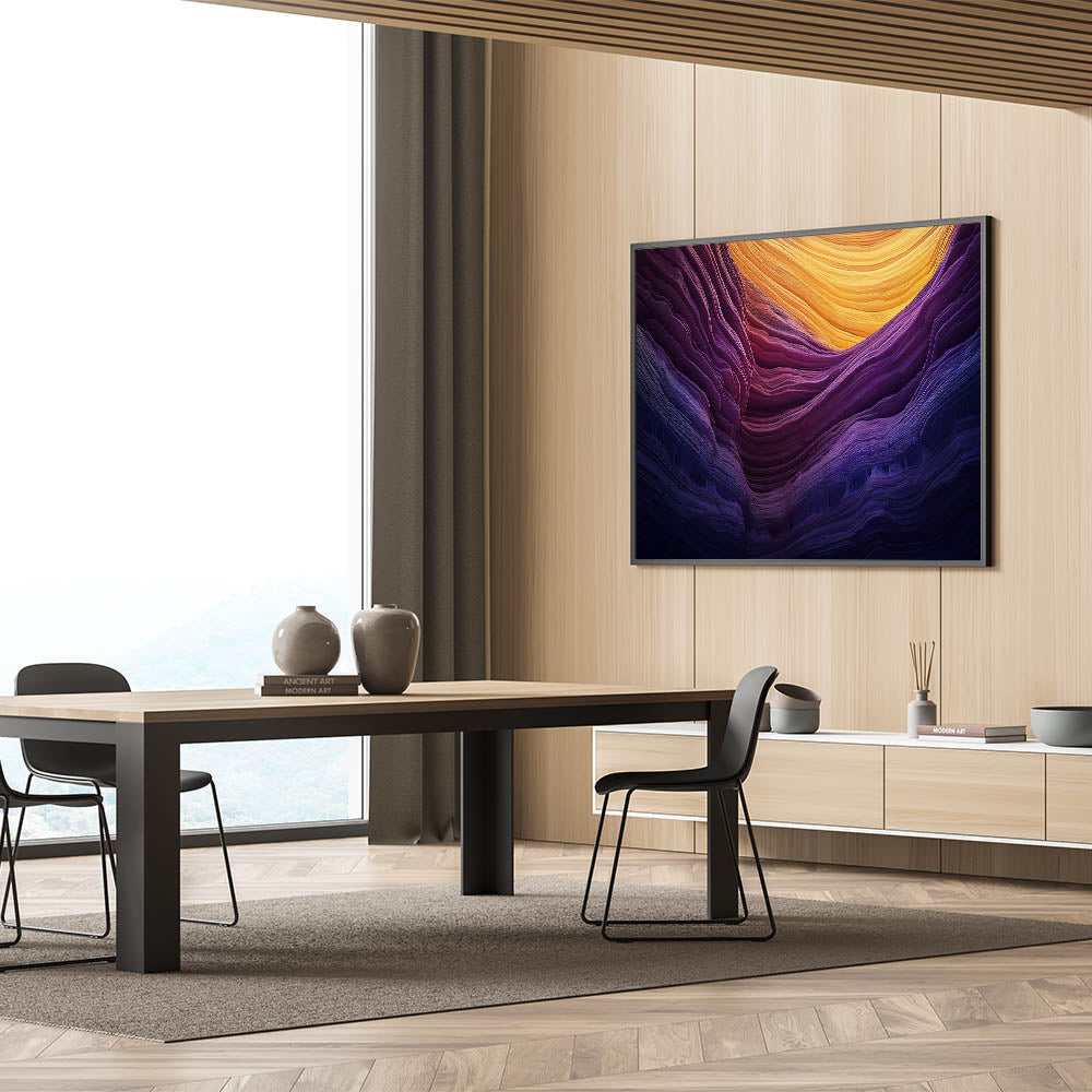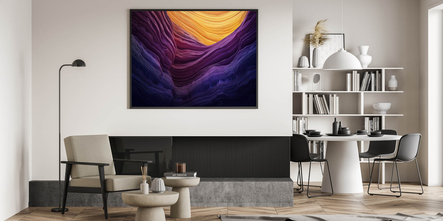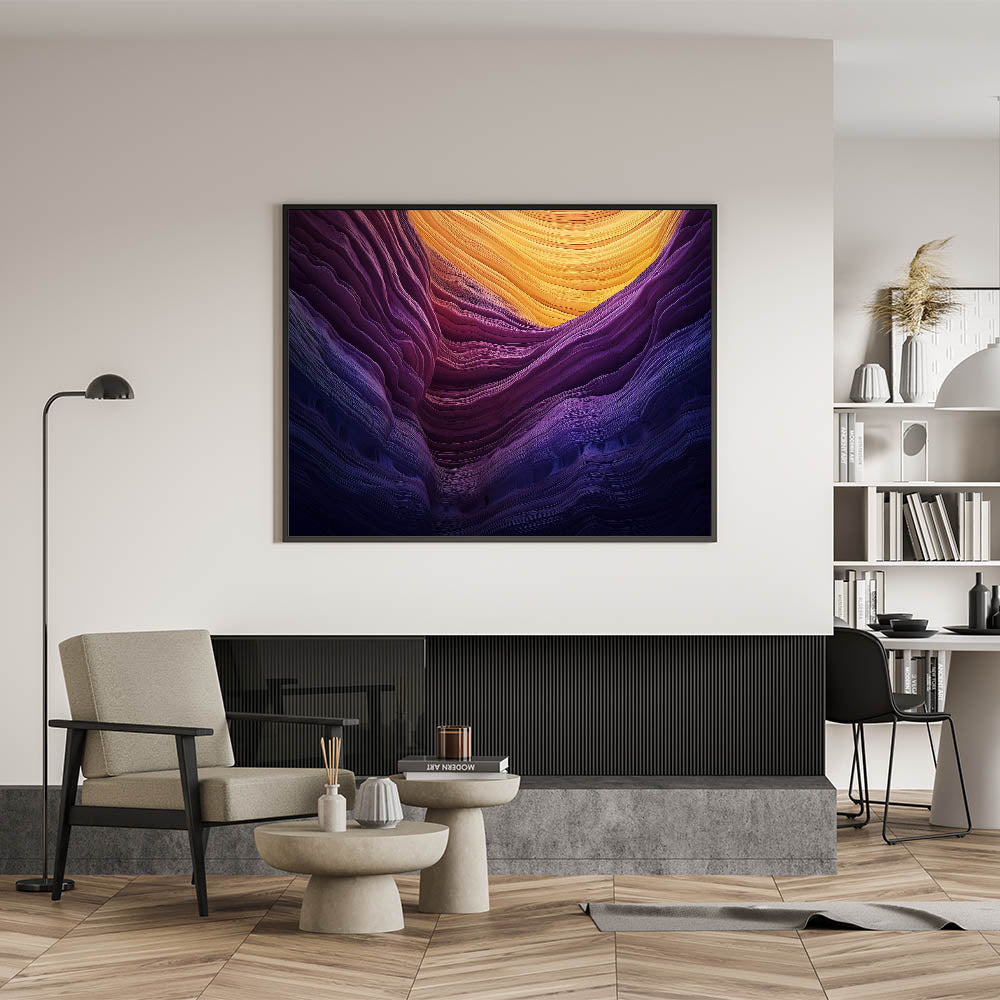 Bring the wonder of nature into your home with this captivating canyon artwork. The bold interplay of purple and gold adds warmth and elegance, complementing both modern and rustic interiors. Whether displayed solo or as part of a gallery wall, this canyon artwork for living rooms makes a striking statement and elevates any space with its timeless beauty.