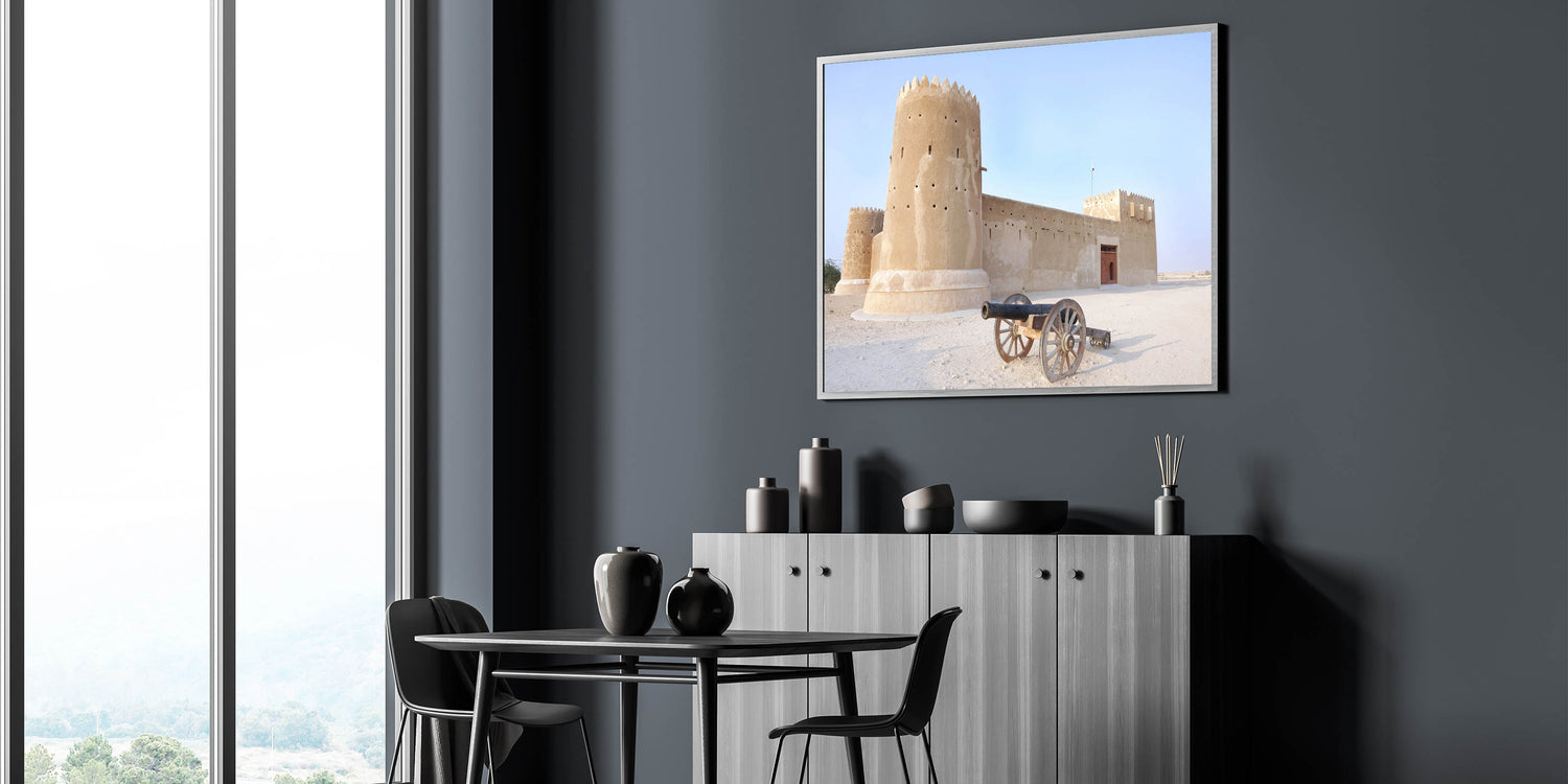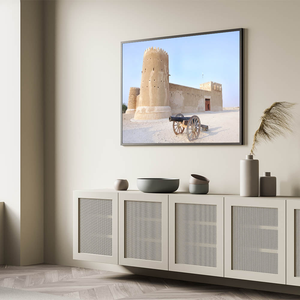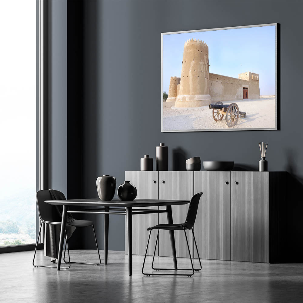 Step back in time with our "Qatari Cultural Art - Historic Fortress Canvas Print," featuring a meticulously captured image of an ancient Qatari fortress. This print brings the rich history and architectural grandeur of Qatar right into your living or working space.