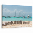 Immerse yourself in the tropical beauty of Cancun with this captivating Quintana Roo wall art. Featuring a picturesque view of the serene turquoise waters, dotted with sailboats, this piece perfectly captures the tranquil atmosphere of Mexico’s famous Riviera Maya. The wooden posts in the foreground add a rustic, authentic touch to this coastal landscape, making it ideal for beach-inspired home decor.