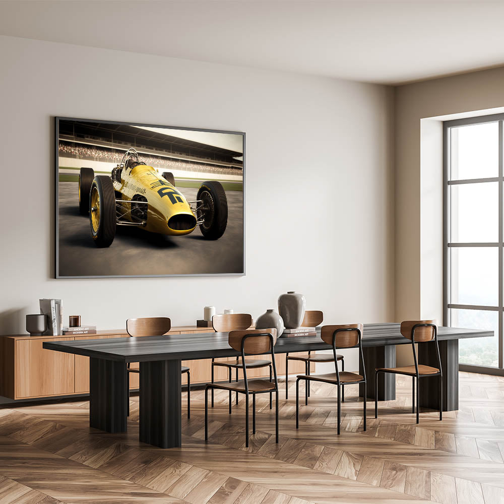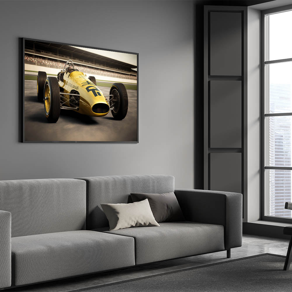 Elevate your space with this stunning Golden Formula 1 Art Poster that embodies the spirit of speed and precision. This eye-catching racing car canvas print is perfect for motorsport enthusiasts who appreciate the blend of art and high-performance engineering. Whether displayed in a modern living room, office, or garage, this piece adds a sophisticated and dynamic touch to your decor.