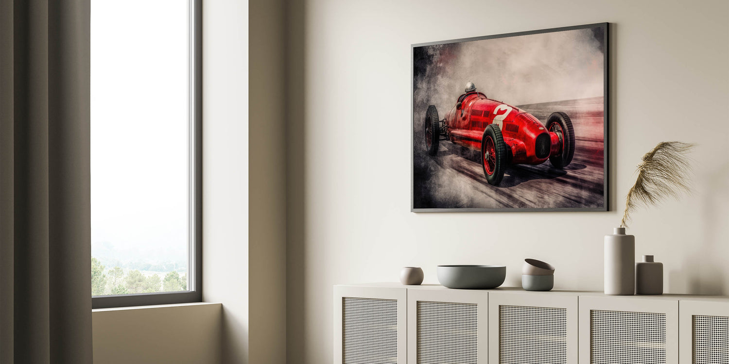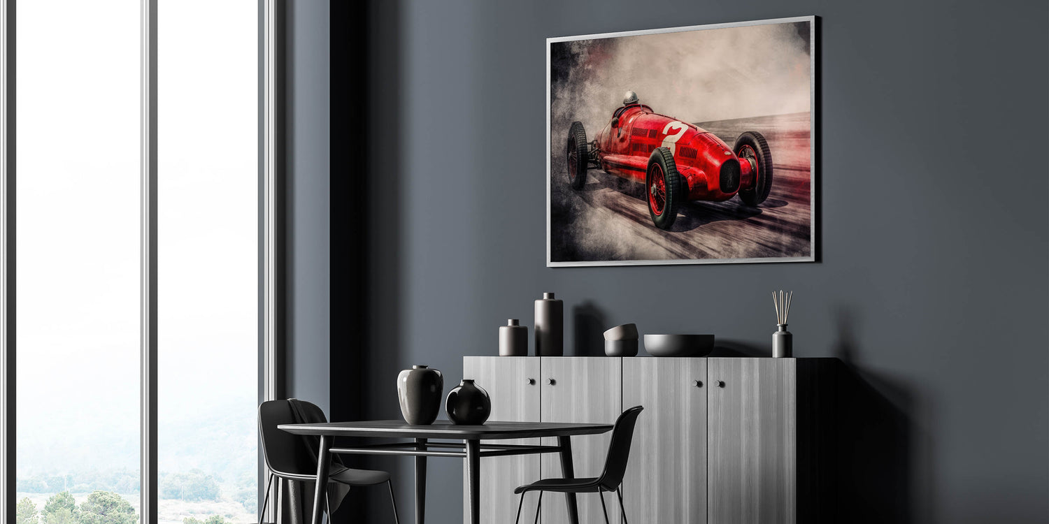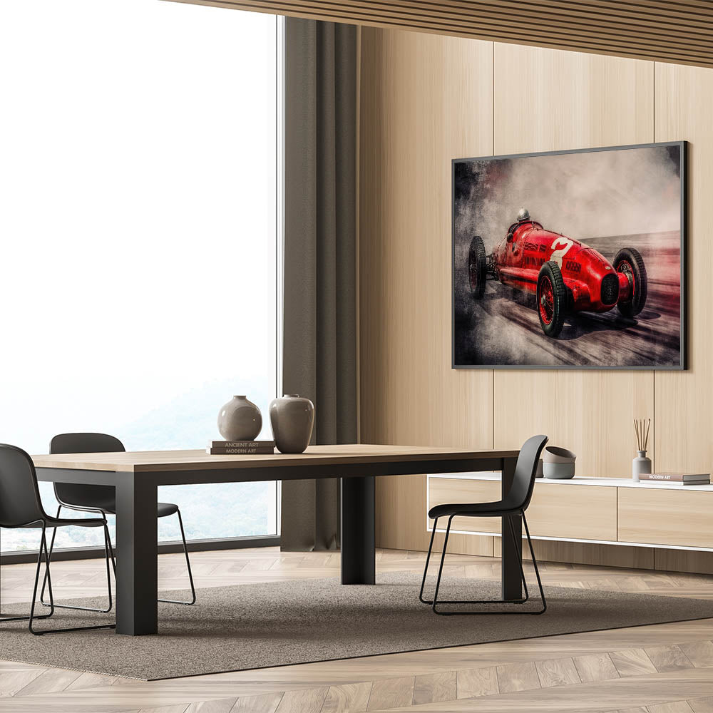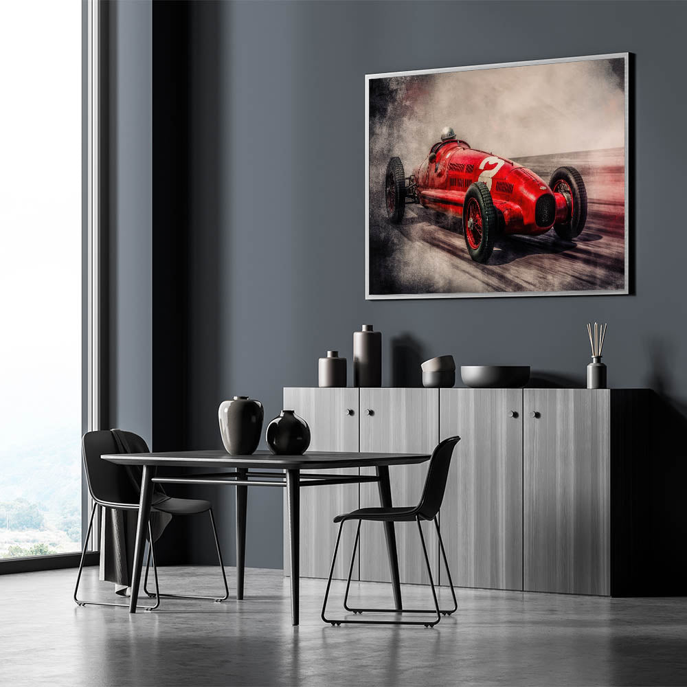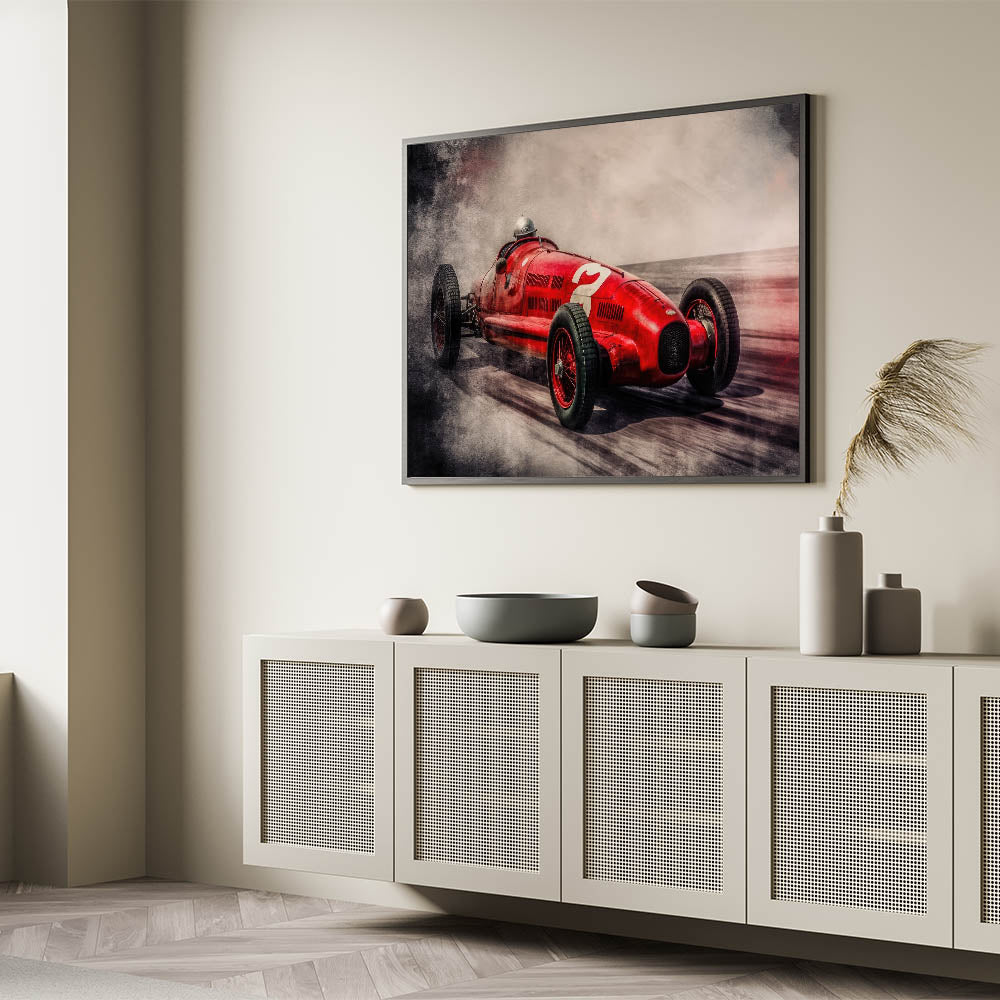 Celebrate the golden age of racing with this captivating vintage red race car art. Its combination of classic design and modern printing techniques make it a must-have for any motorsport lover.
