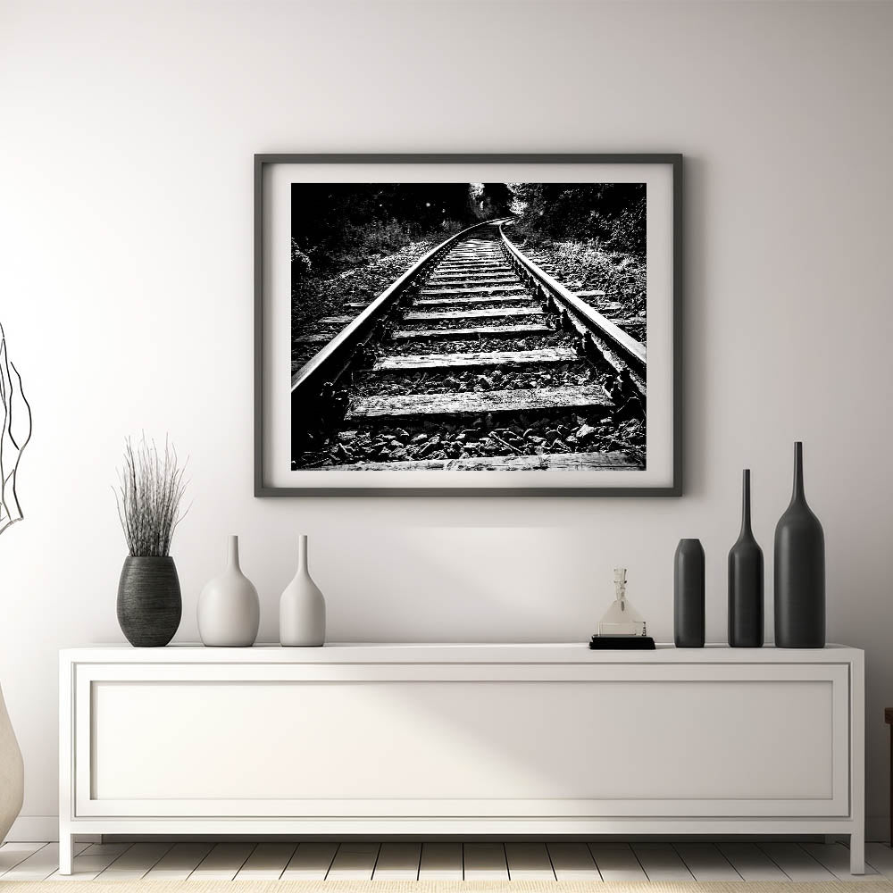 Monochrome Railroad Wall Art - Black and White Railway Photography Print