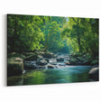 - High-resolution canvas print showcasing the serene beauty of a tranquil river flowing through a lush rainforest.