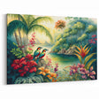 Tropical Birds & Flowers Art - Lush Rainforest Canvas Print - Nature Decor