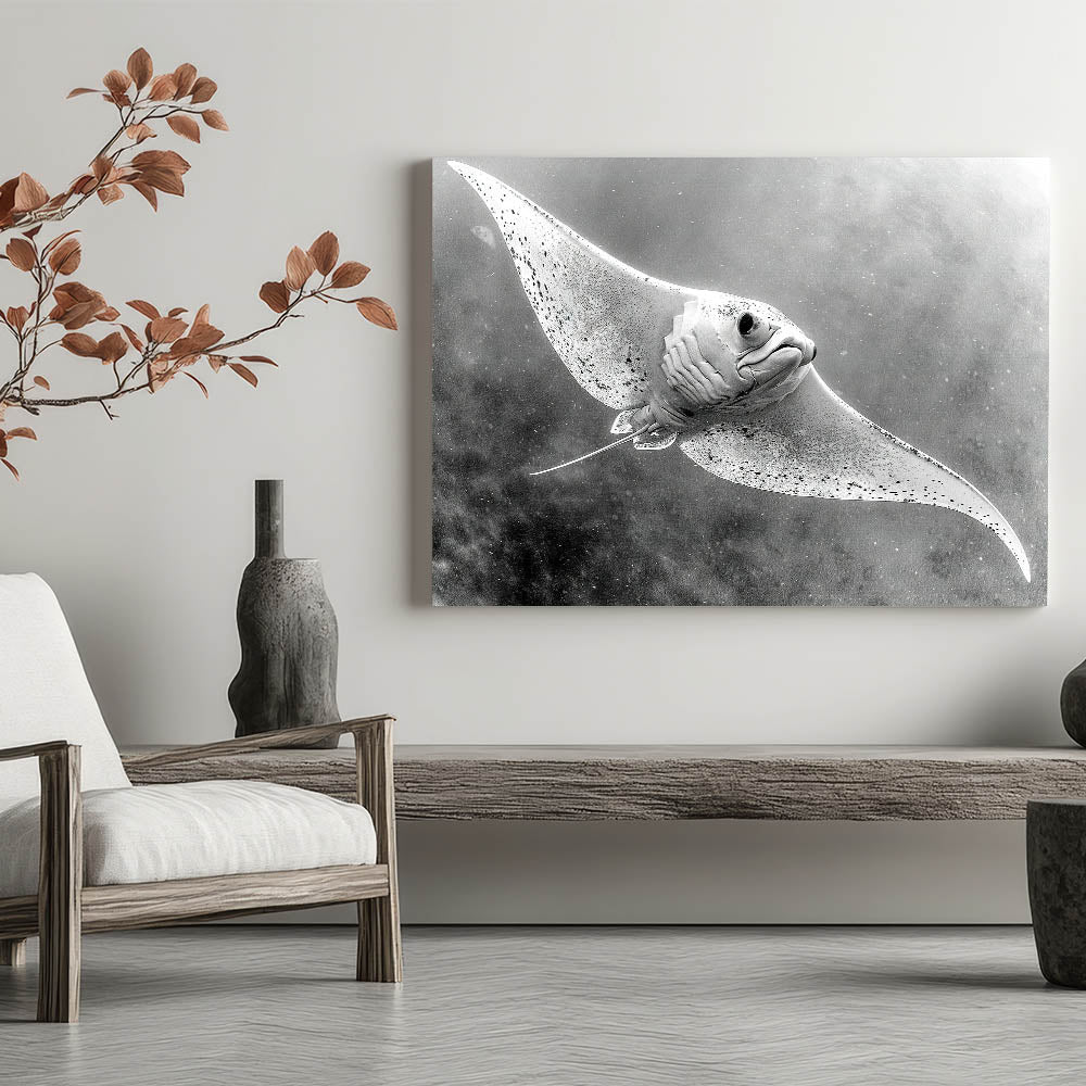 Elegant Ray Wall Art - Monochrome Marine Life Canvas & Framed Prints