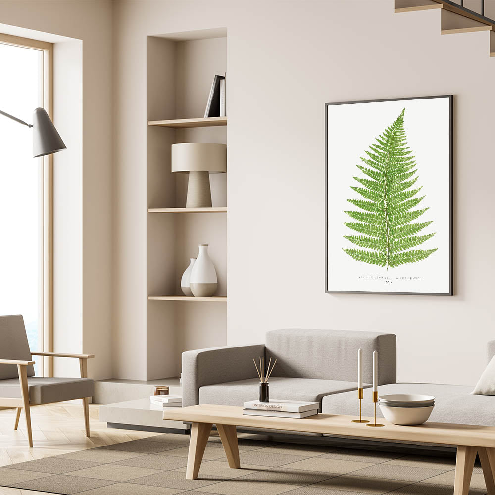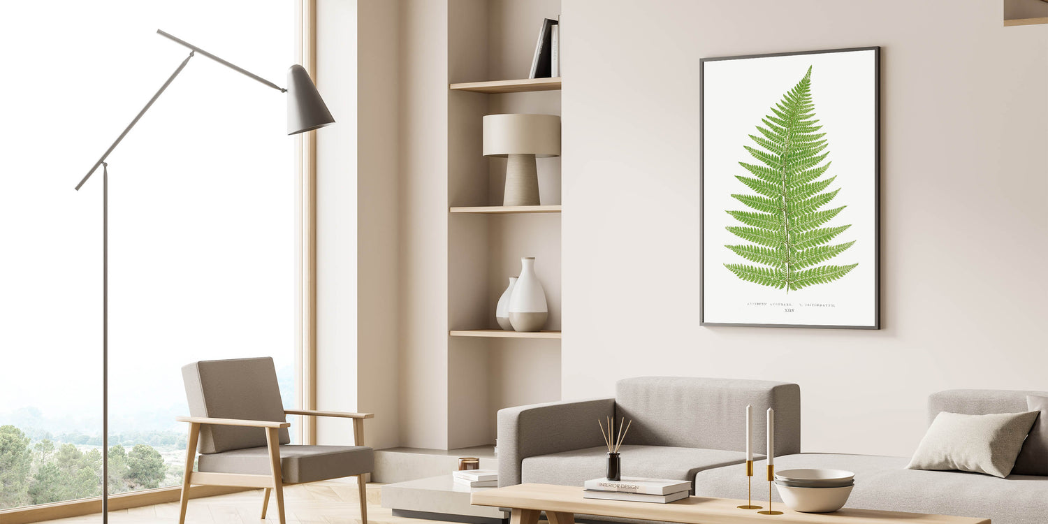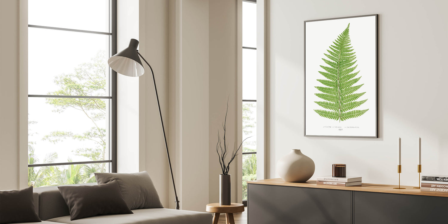 Add a touch of natural elegance to your space with this botanical Realism print, "Aspidium Angulare V. Tripinnatum," by Edward Joseph Lowe. This detailed illustration from Lowe's 1856-1860 collection captures the intricate beauty of a fern leaf in rich green tones, highlighting each delicate frond with scientific precision. Ideal for those who appreciate the beauty of nature and botanical art, this print brings a calming, verdant presence to any room.