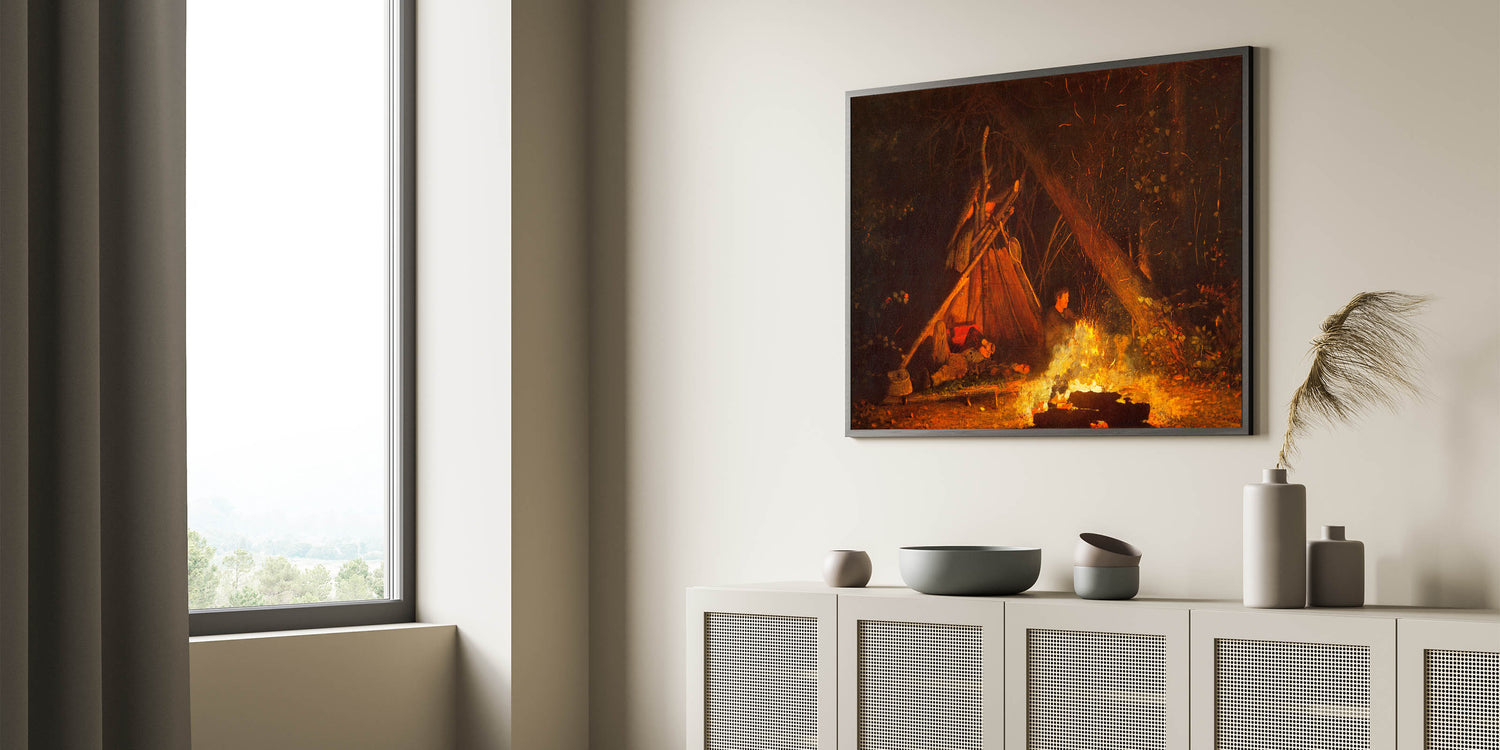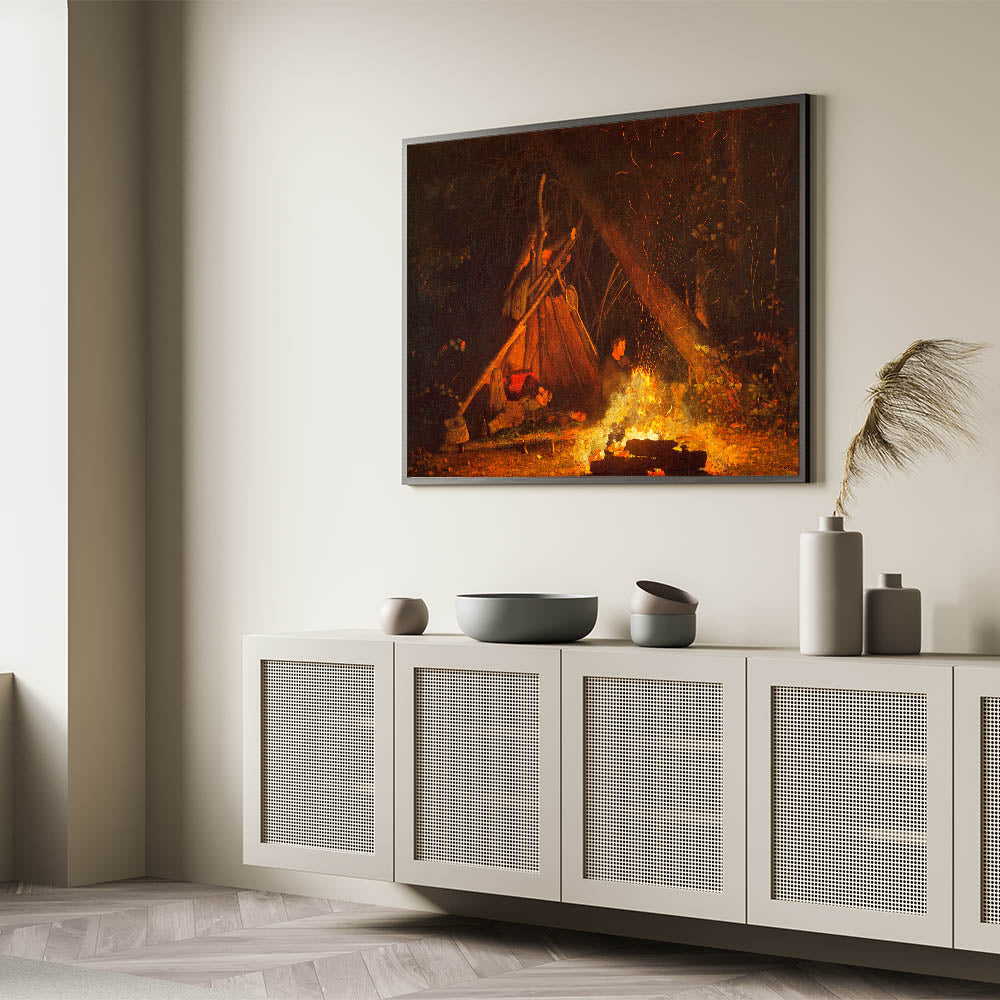 Bring the allure of the great outdoors into your home with this timeless piece. Homer's "Camp Fire" invites viewers to experience a serene moment in nature, capturing both warmth and wonder.