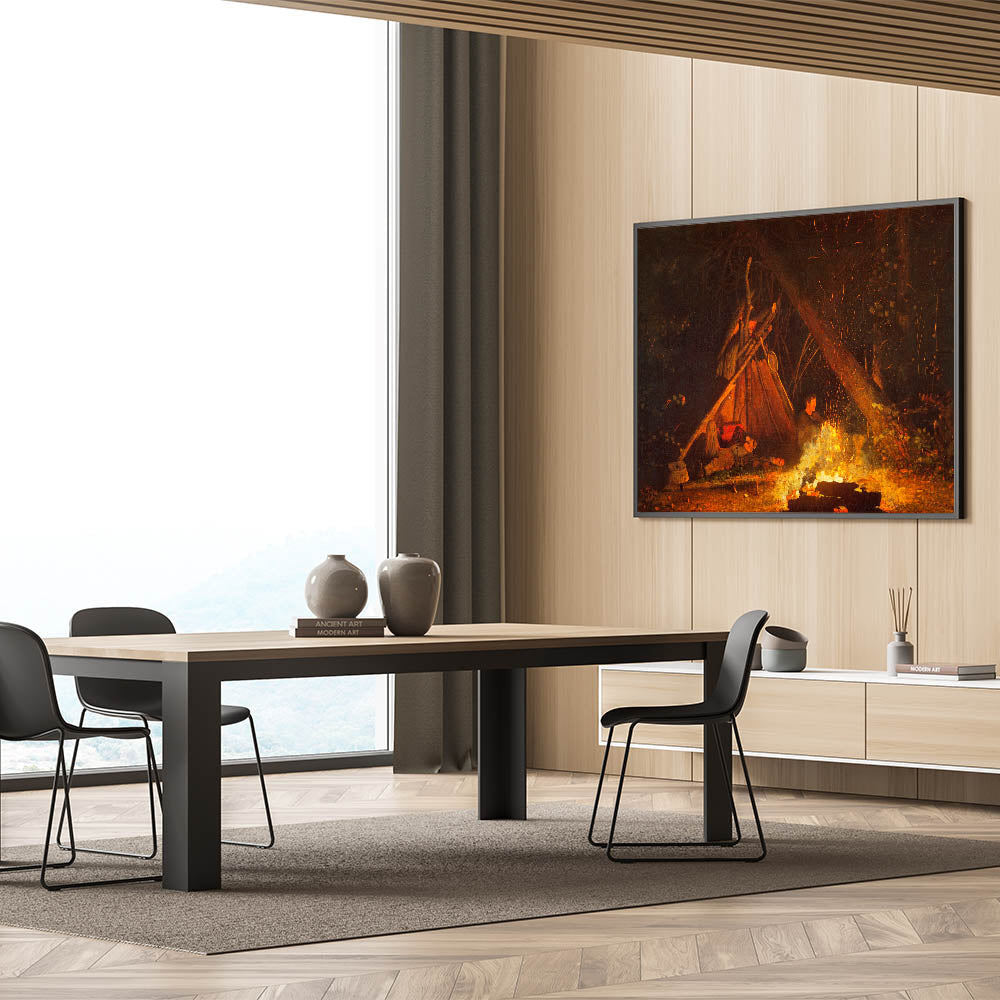 • Rich Nighttime Realism: Depicts the dynamic play of firelight and shadow, creating a cozy yet mysterious ambiance.