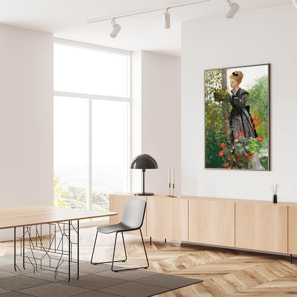 Classical Realism Painting - Woman in Garden Realistic Wall Art