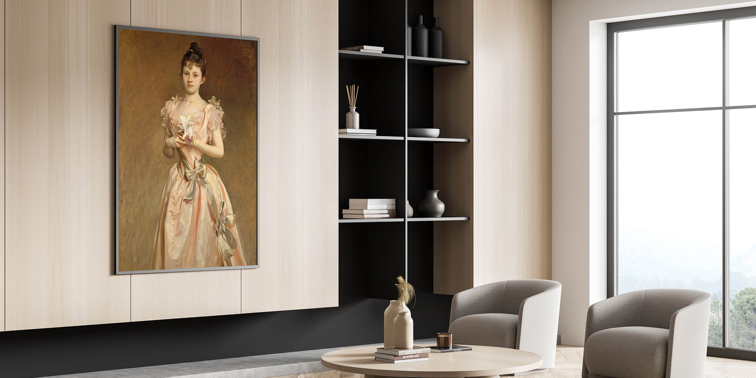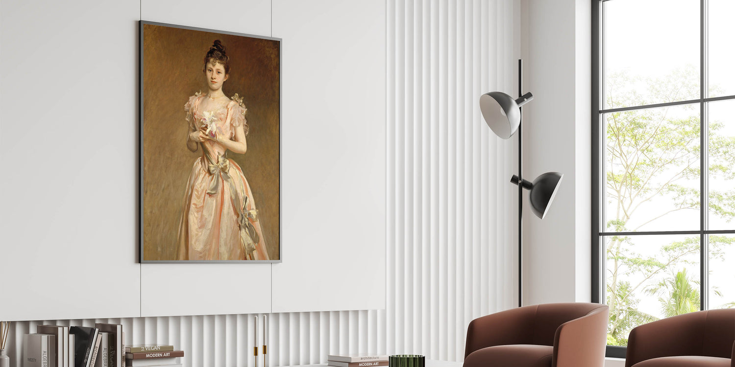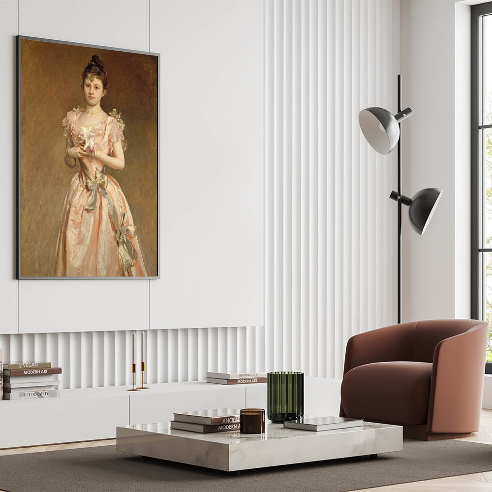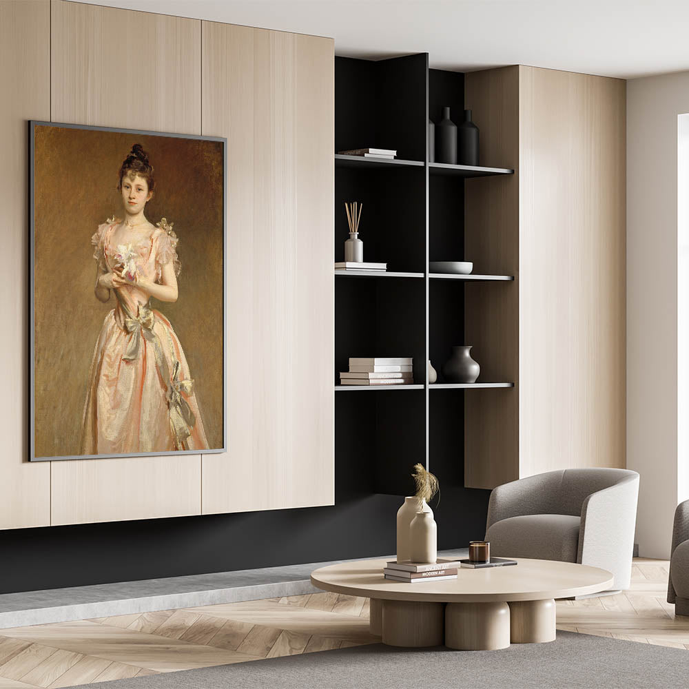 This stunning realism art print showcases a captivating Victorian portrait of a young woman, Miss Grace Woodhouse, as depicted by renowned artist John Singer Sargent. This piece exudes elegance and grace, making it an ideal addition to classic and sophisticated interior decor. The detailed brushwork brings out the soft pink tones of her dress, delicate floral details, and gentle expression, offering a timeless beauty perfect for any refined space.