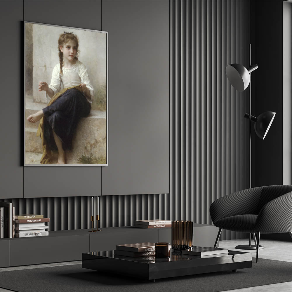 Discover the serene beauty of "Young Girl in Repose," a masterpiece in our Classical Realism Art Prints collection. This captivating portrait by William-Adolphe Bouguereau, renowned for his mastery in Fine Art Realism, showcases a young girl in a reflective pose, offering a window into the soulful, everyday moments of the 19th century.