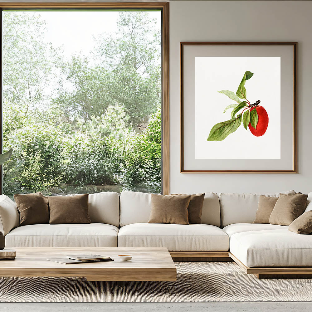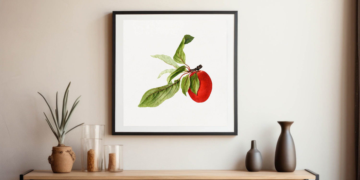 Add a touch of vintage charm to your space with this beautifully detailed "Vintage Plum" botanical illustration. This piece from our Realism Art Prints for Home Decor collection showcases a red plum branch with lifelike leaves, capturing the beauty of nature’s simplicity. Perfect for kitchens, dining rooms, or any room that celebrates natural beauty, this artwork brings a timeless elegance to your decor.