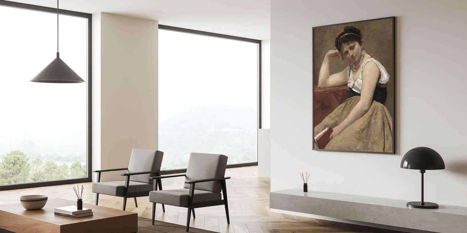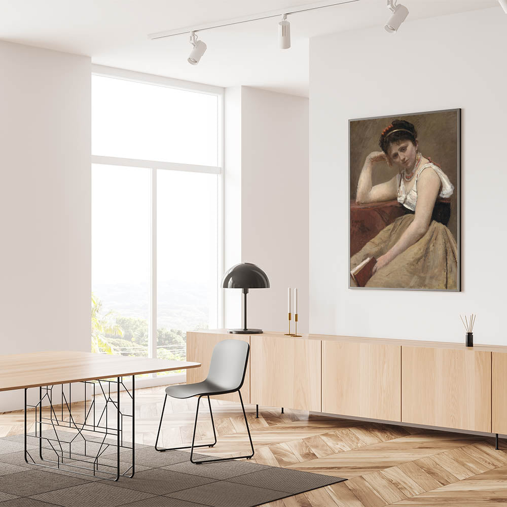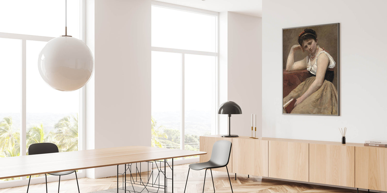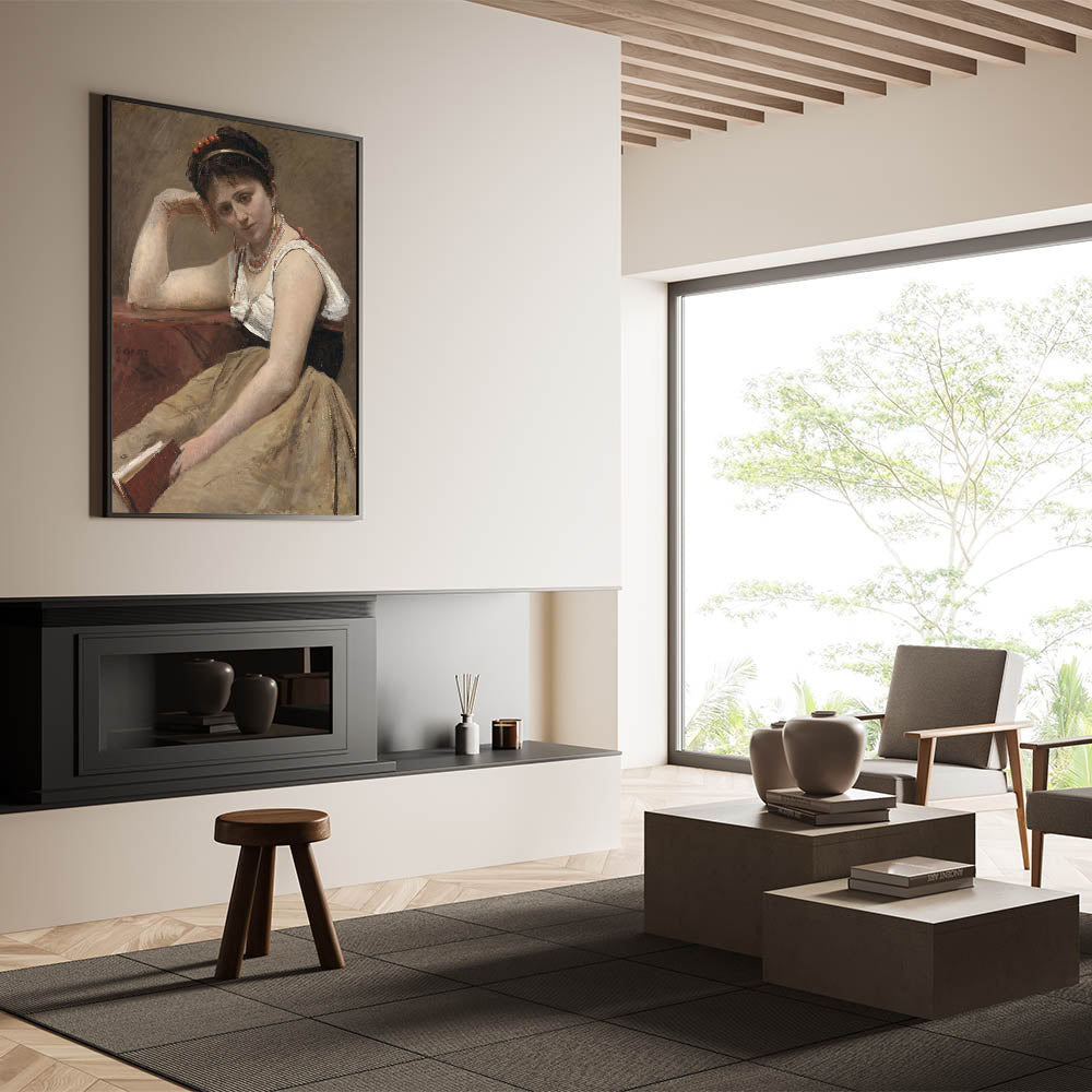 Embrace the elegance of realism with this art print featuring a woman caught in a moment of introspection while reading. Ideal for those who appreciate classical realism paintings, this piece beautifully captures the timeless allure of calm and reflective thought, making it a stunning addition to any home or office.