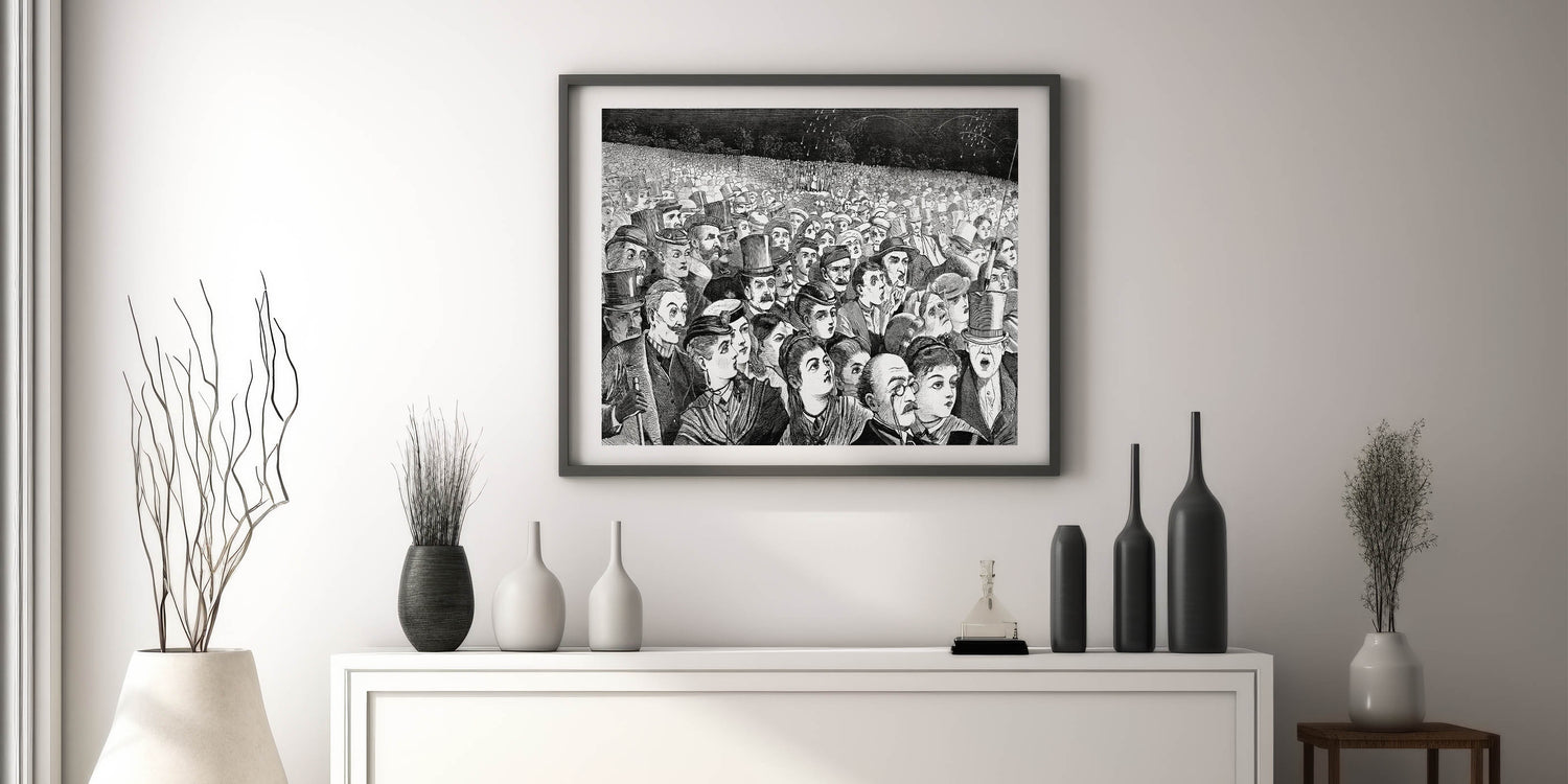 This artwork captures the anticipation and vibrancy of a Fourth of July celebration in the 19th century. With its detailed expressions and dynamic composition, this piece is ideal for those who enjoy art that tells a story and captures the spirit of a moment.