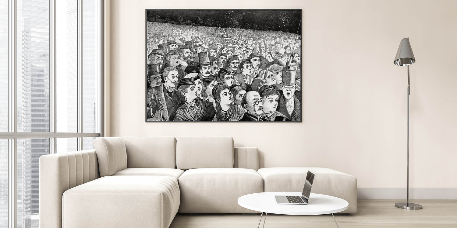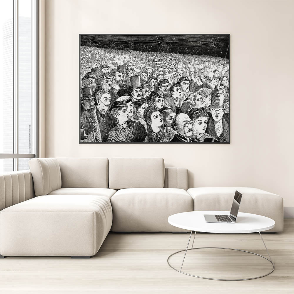 Celebrate the energy of Independence Day with "Fireworks on the Night of the Fourth of July" by Winslow Homer. This intricate Realism art print captures a bustling crowd gathered to watch the fireworks, their expressions reflecting awe, curiosity, and excitement. Homer’s detailed portrayal of faces and attire immerses viewers in a historical celebration, making it a fascinating addition for anyone who appreciates Americana and social scenes.