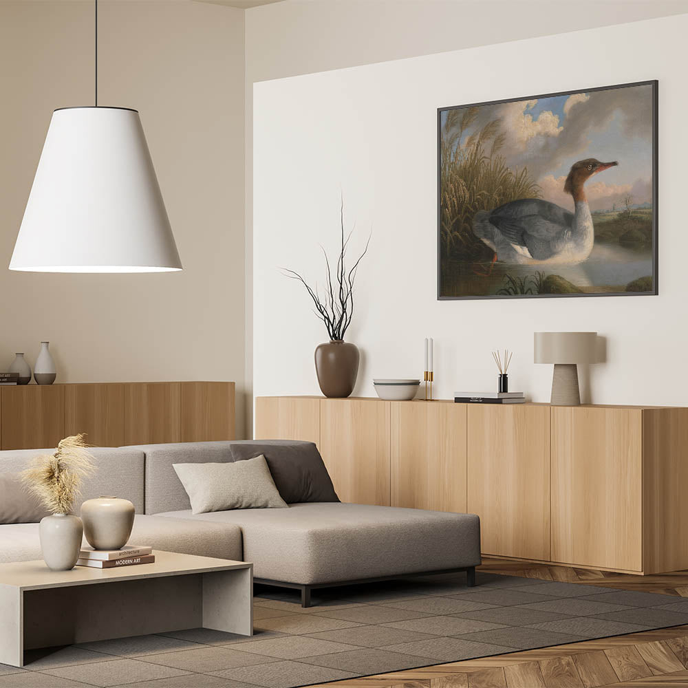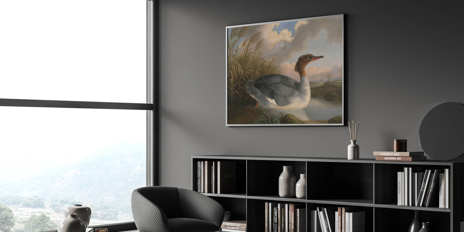 - Detailed Wildlife Realism: Padley’s meticulous attention to texture and color showcases the Goosander and its natural habitat with authenticity.