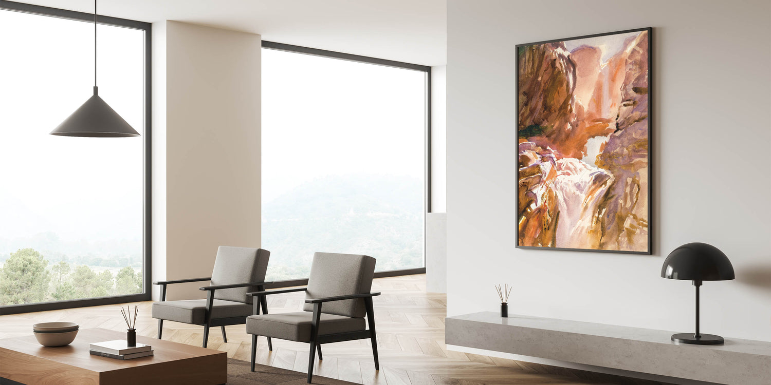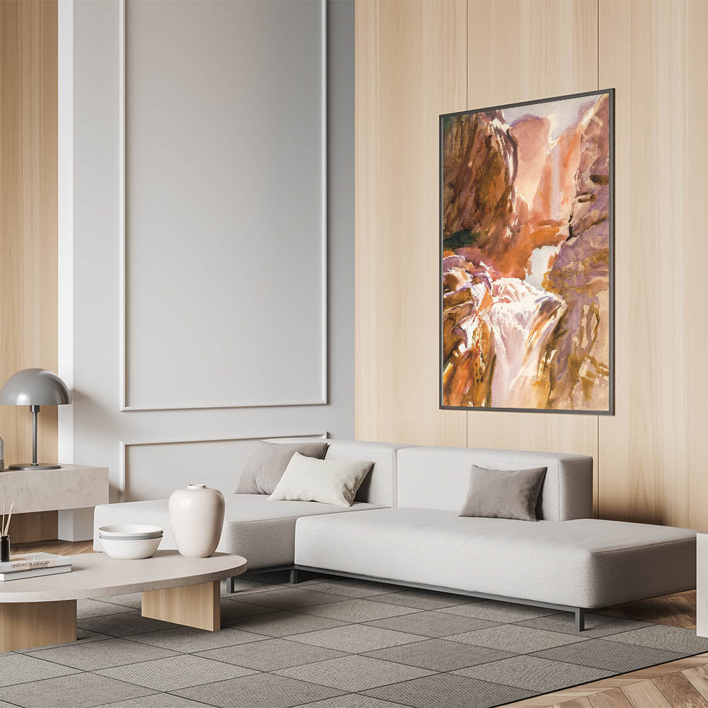 Sargent’s skillful depiction of the cascading water and surrounding rocks captures the wild essence of the mountains. This artwork is an excellent choice for those who appreciate both the beauty of nature and the dynamic energy of Realism art, bringing an adventurous spirit to any space.