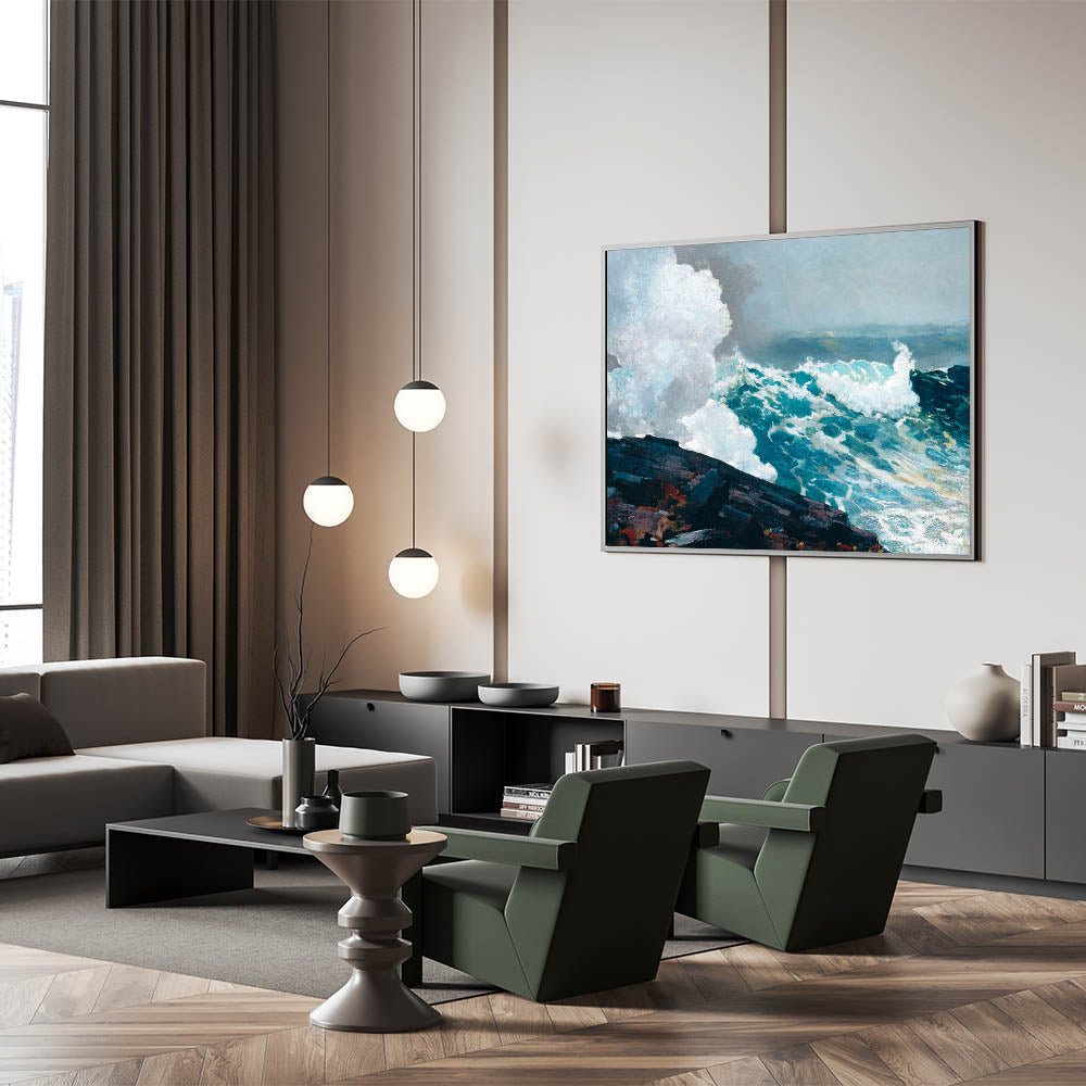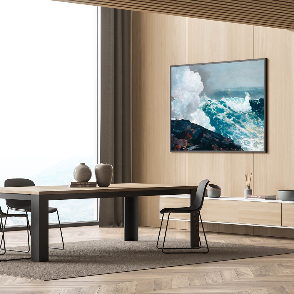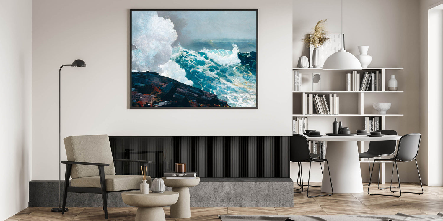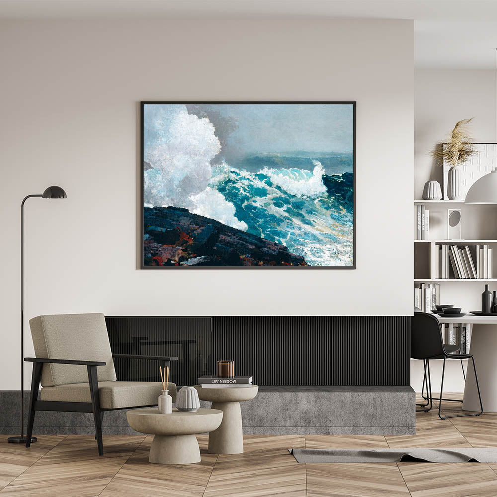 Immerse yourself in the raw power of the sea with "Northeaster" by Winslow Homer, a captivating piece from our Realism Art Prints collection. This dramatic seascape captures the strength and beauty of crashing waves against dark, rugged rocks under a stormy sky. Homer's expert use of color and movement brings the ocean to life, making this piece ideal for those who appreciate the untamed beauty of nature and the artistry of realism.
