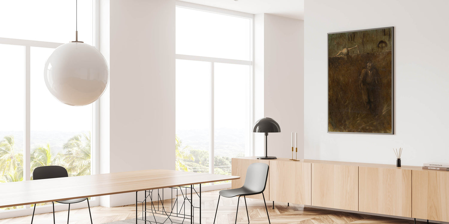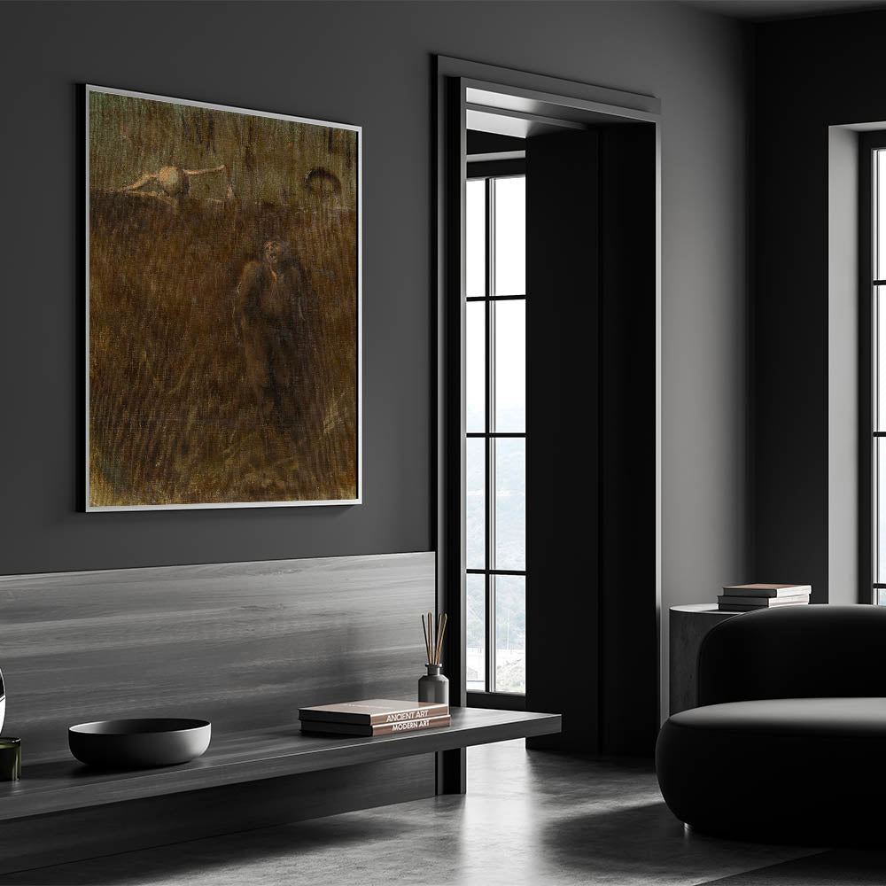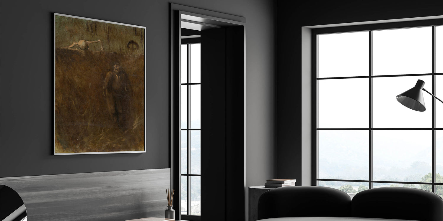 This haunting realism art print, "Memento" by László Mednyánszky, explores the darker depths of human emotion and existential reflection. The piece captures a solitary figure immersed in a shadowy landscape, evoking a sense of isolation, contemplation, and mystery. Mednyánszky’s use of earthy, muted tones enhances the intensity of the scene, making this artwork a powerful addition to any space seeking depth and sophistication. Ideal for studies, libraries, or any area meant for introspection, this print invites viewers to delve into the complexities of human experience.