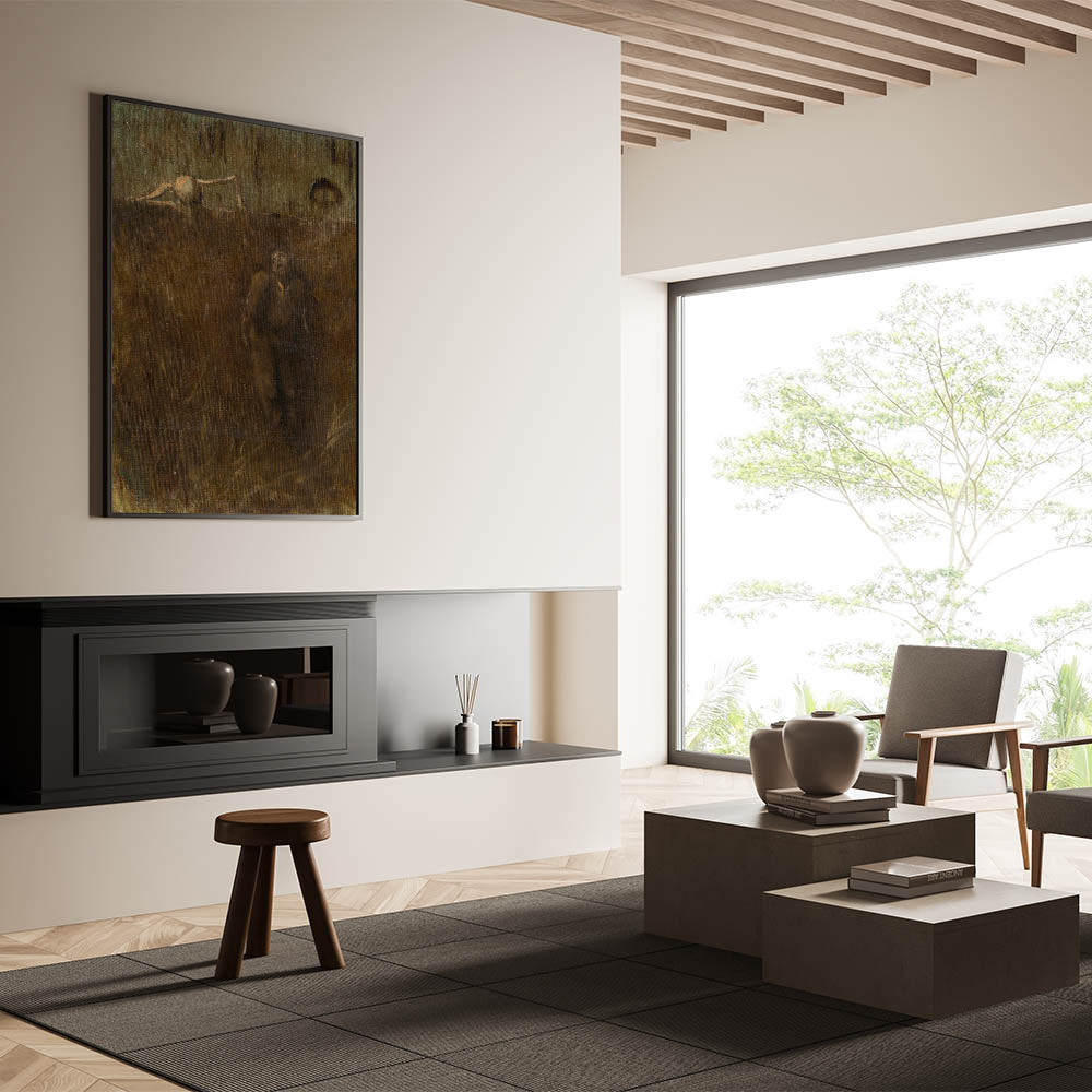 This evocative piece is an excellent choice for those looking to add an artwork that stimulates thought and emotion. Its dark, mysterious qualities make it a unique and impactful focal point.