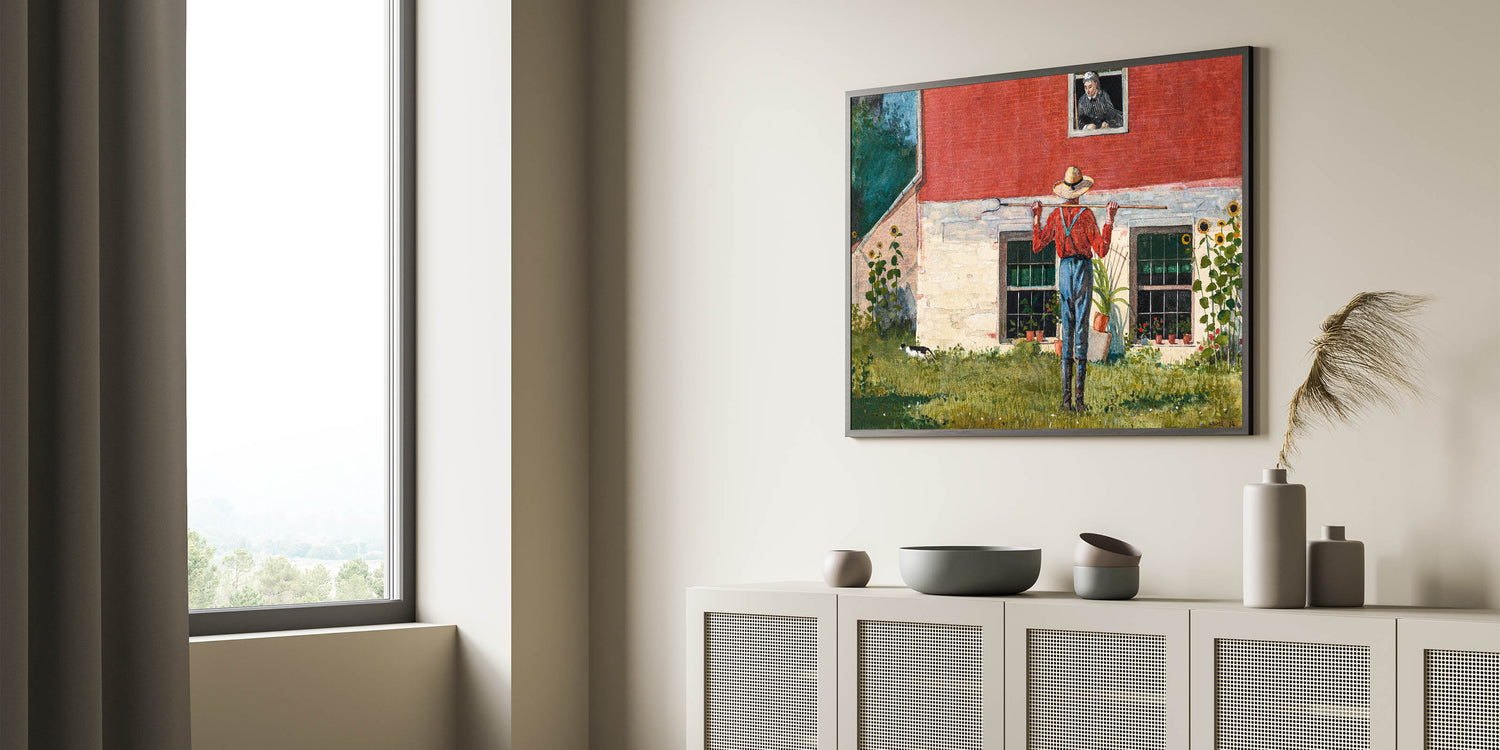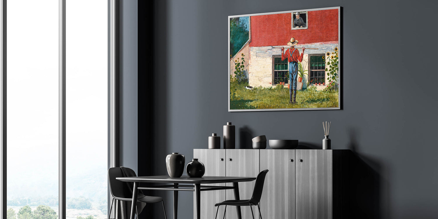 This timeless realism art print adds character and color to any room, transporting viewers to a peaceful, simpler time. With its bright red, green, and yellow tones, it’s a versatile addition to traditional and contemporary decor styles alike.