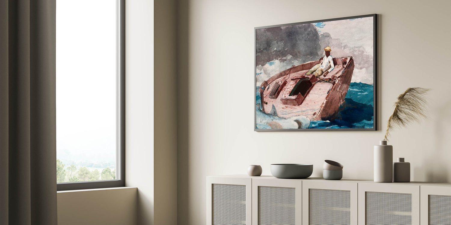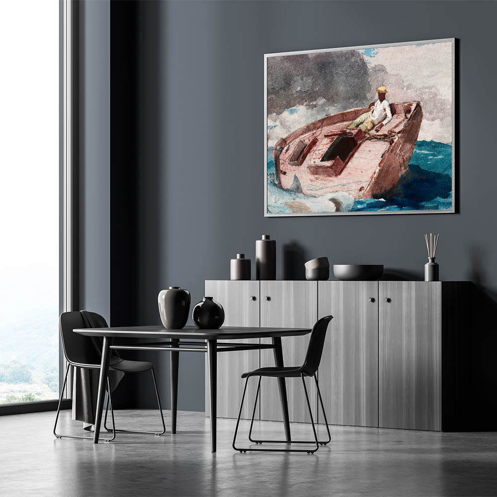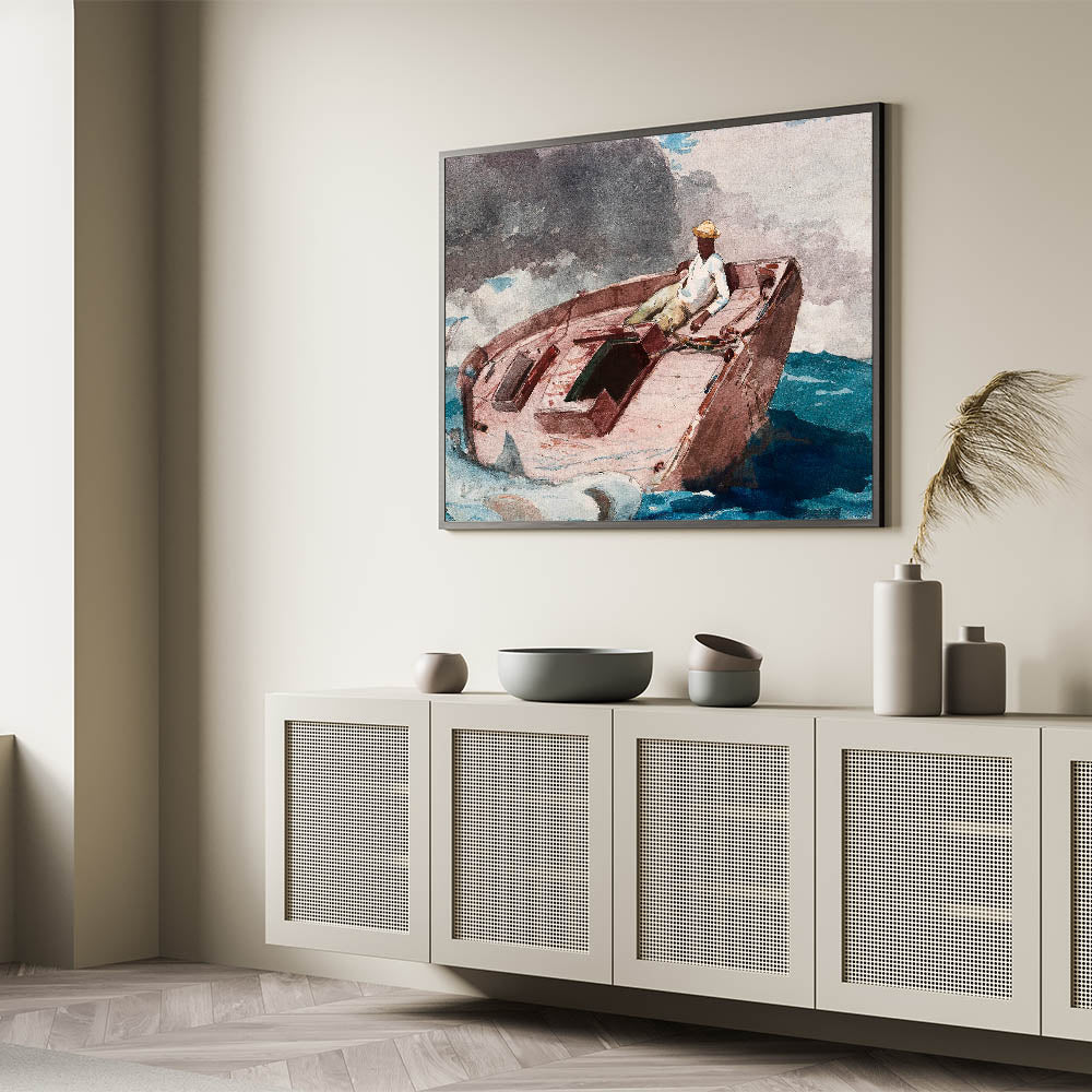 Experience the power and solitude of the open sea with "The Gulf Stream" by Winslow Homer. This realism art print captures a lone sailor on a distressed boat, surrounded by turbulent waves and looming clouds, evoking a sense of isolation and resilience in the face of nature’s raw forces. Homer’s expressive brushstrokes and the vivid contrast between sky and sea make this piece a stunning portrayal of both human vulnerability and strength.