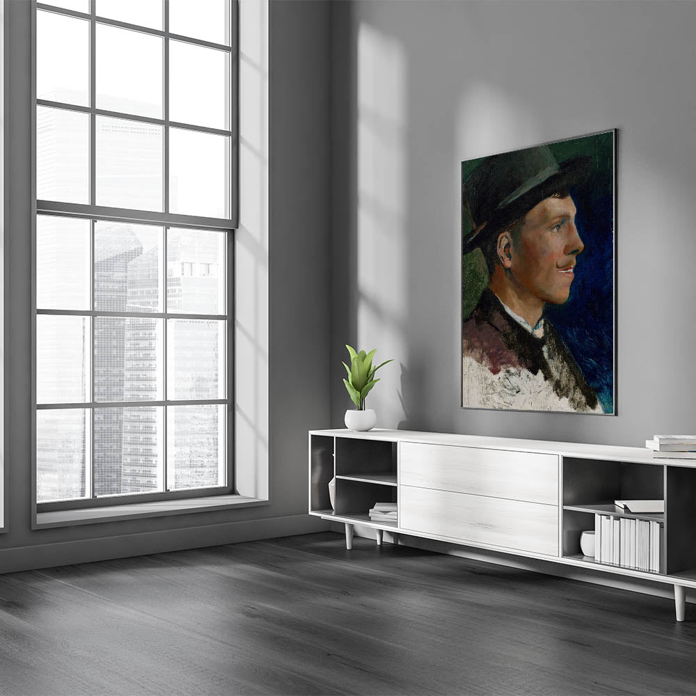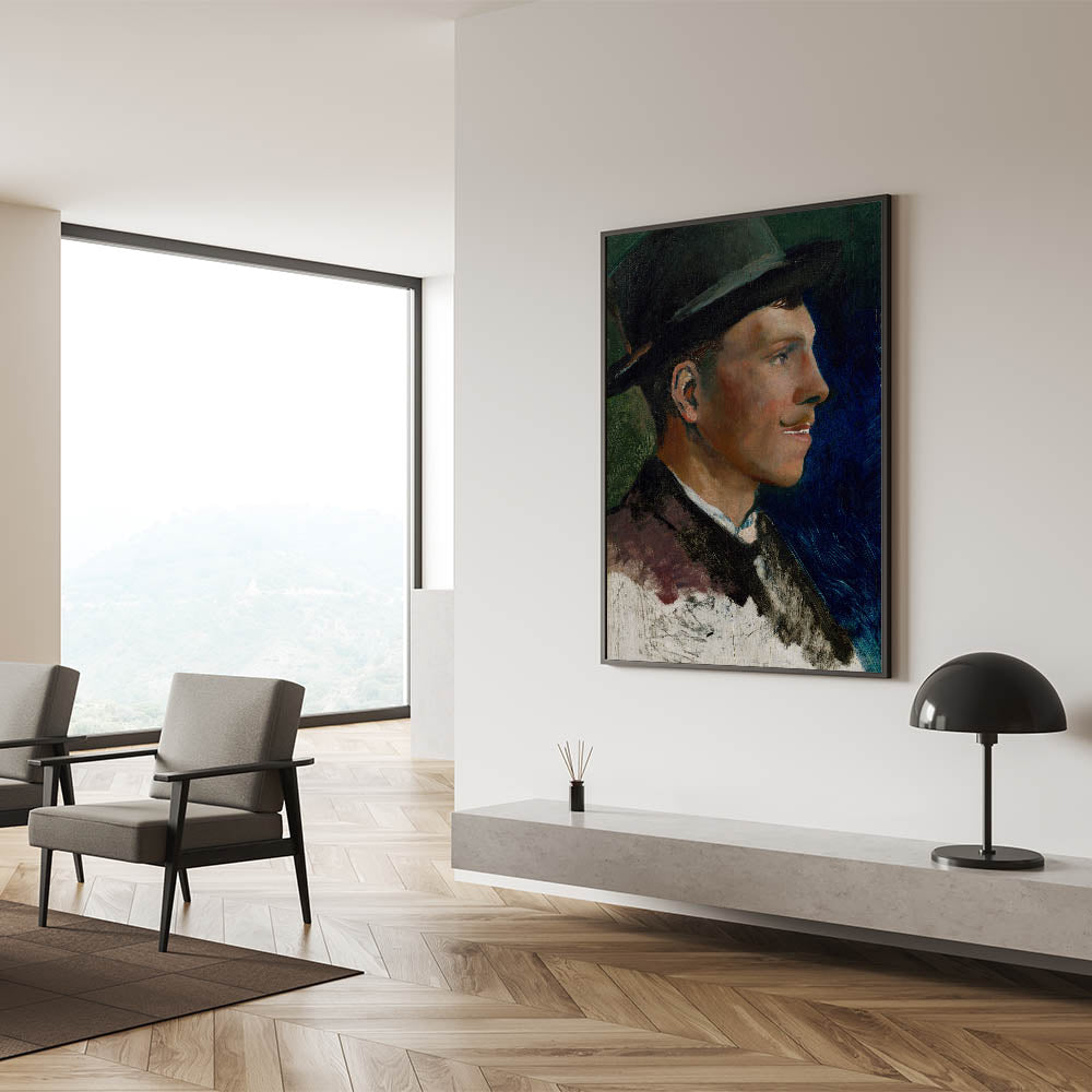 Introduce a touch of rustic charm with "Village Boy with Mustache" by Ladislav Mednyánszky, a realism art print that captures the thoughtful profile of a young man in a simple, rural setting. The artist’s attention to detail and use of shadow and color brings out the character and personality of the subject, creating an intimate, lifelike portrait. Perfect for those who appreciate traditional portraiture, this artwork brings a sense of warmth and authenticity to any space.