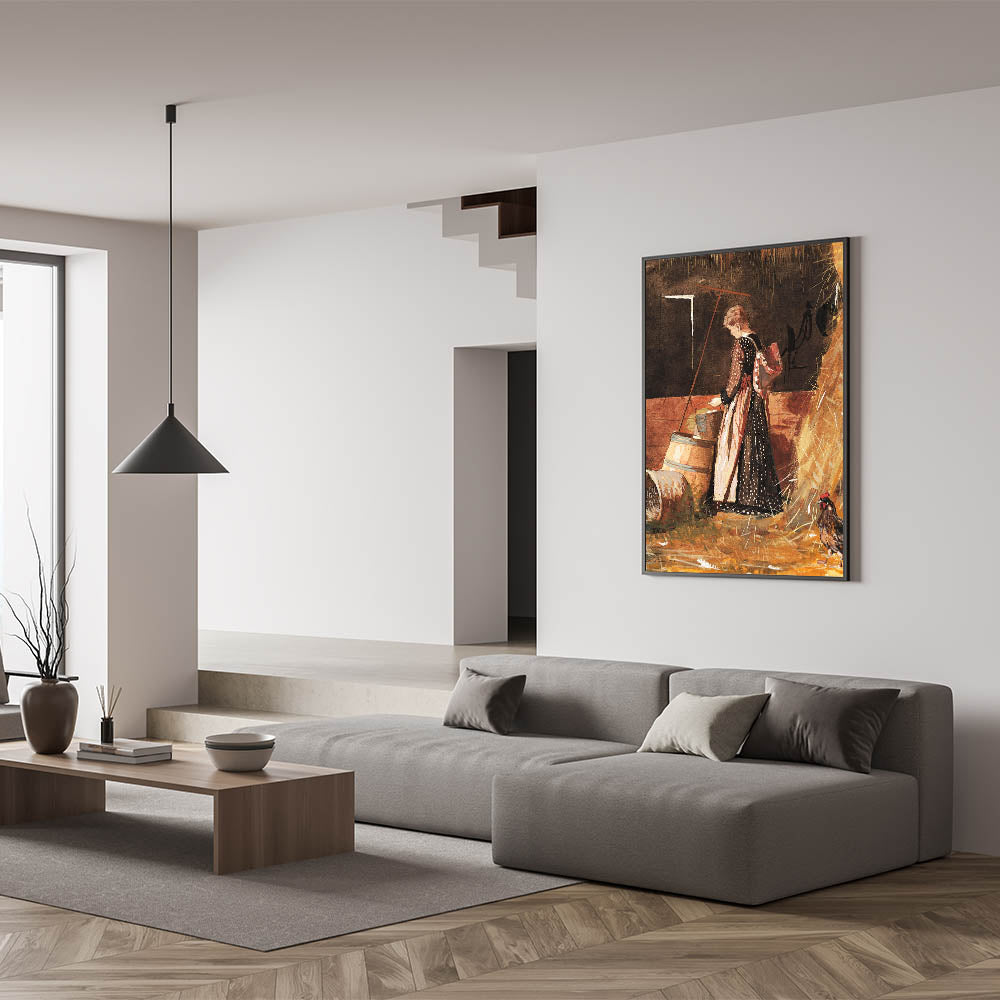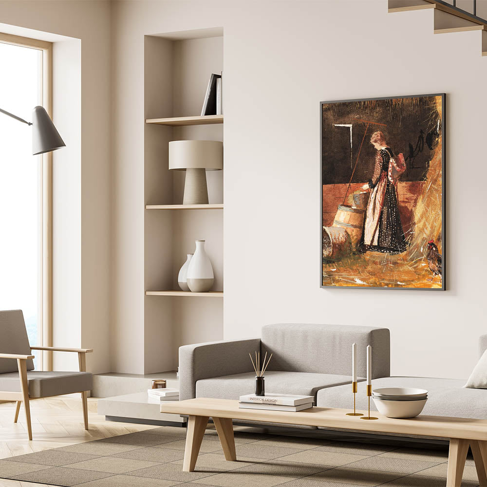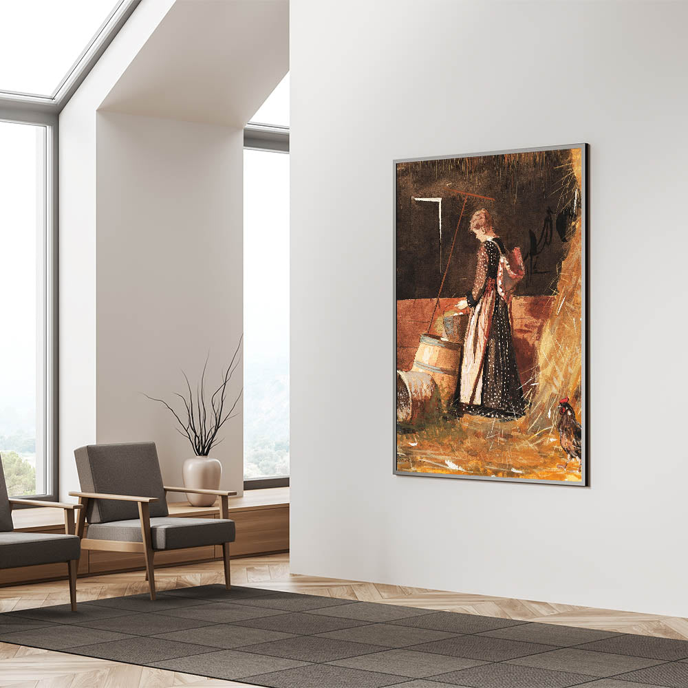 Delve into the rustic charm of Fresh Eggs (1874) by Winslow Homer, a captivating depiction of daily farm life. This artwork showcases a woman gathering eggs, painted with Homer's characteristic warmth and attention to the subtleties of rural settings. The combination of rich colors and intimate, everyday subject matter creates a timeless piece that evokes the simple beauty of pastoral life.