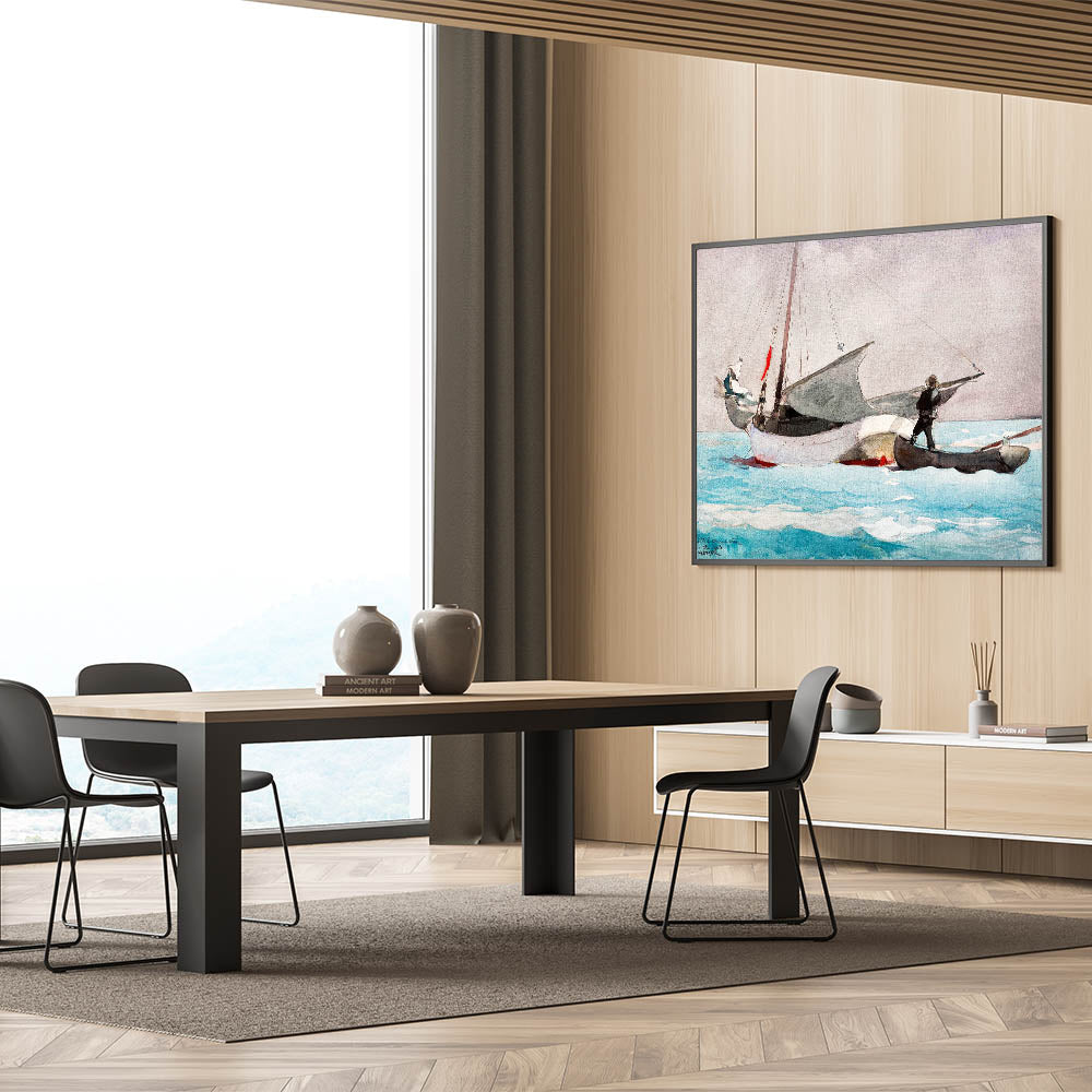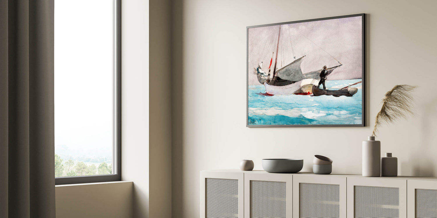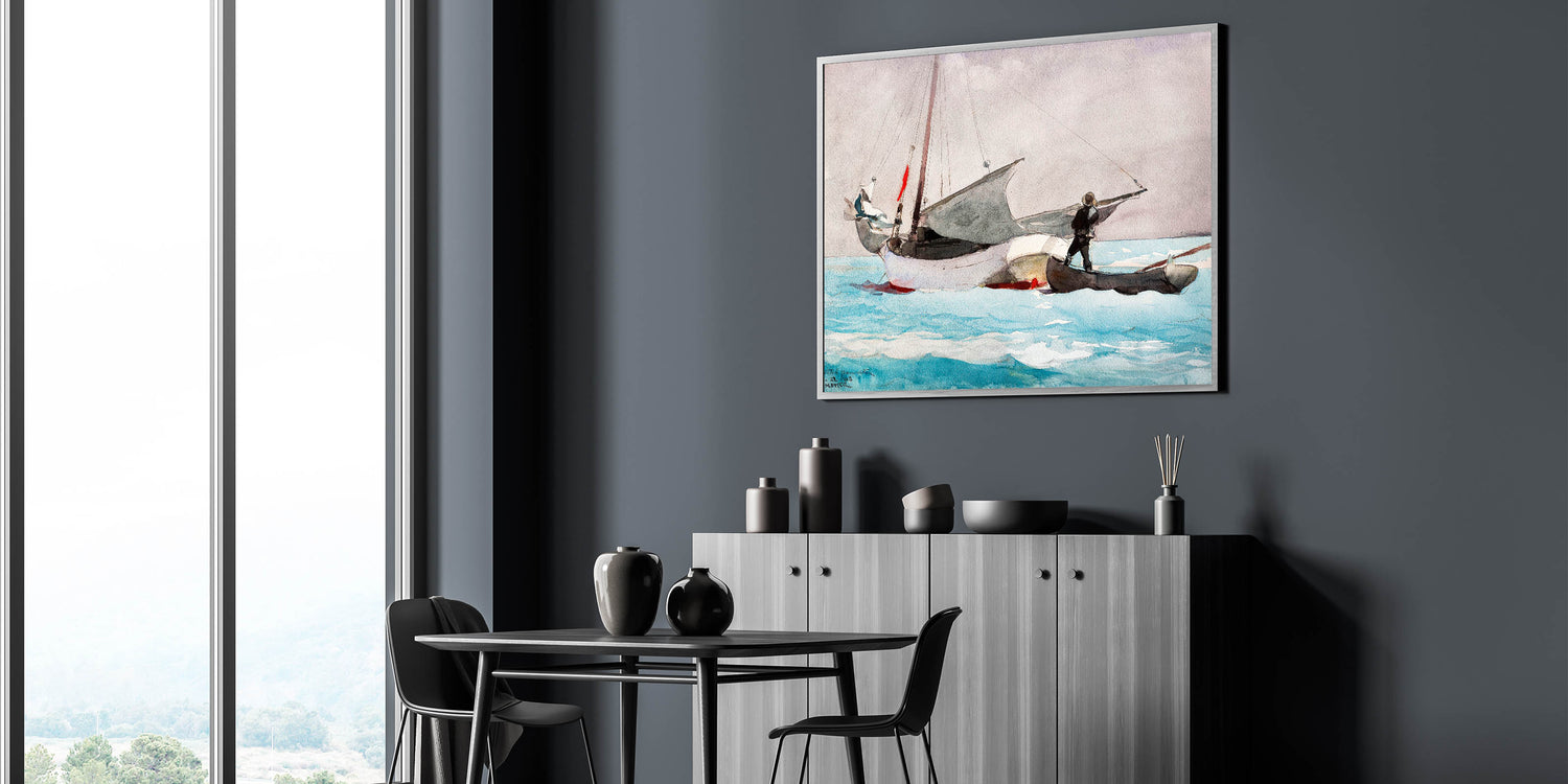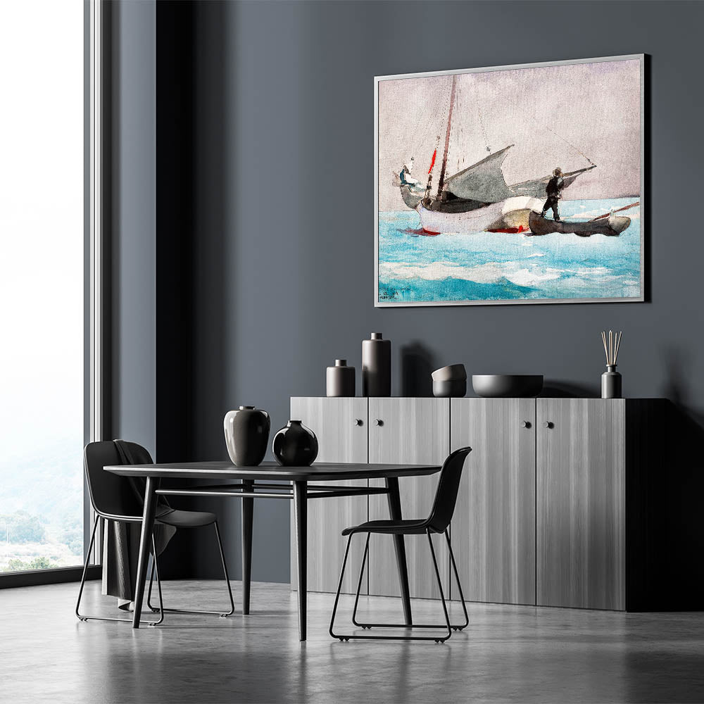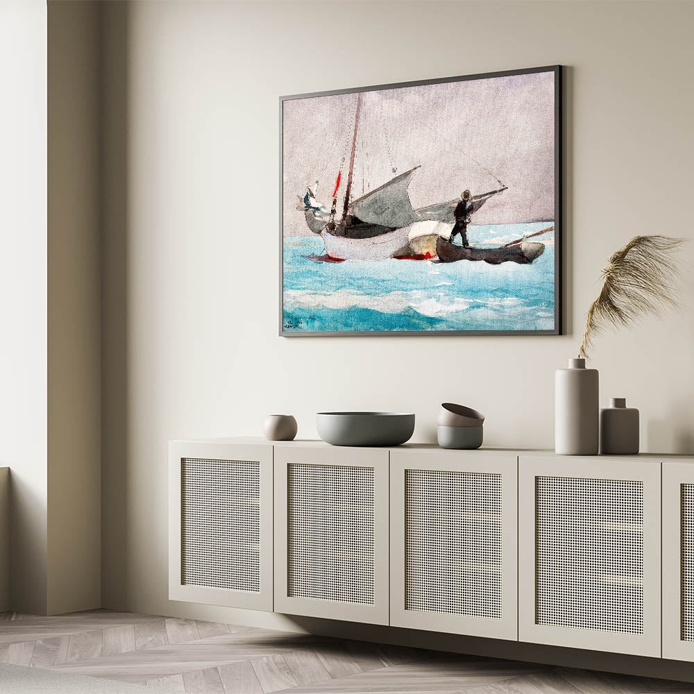 Homer's mastery of watercolor captures the essence of life at sea, offering a tranquil yet dynamic addition to any interior. This piece adds depth, elegance, and a touch of adventure, making it a perfect choice for coastal or nautical decor enthusiasts.